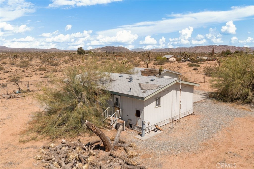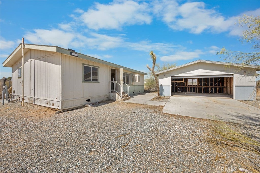 Set against the dramatic backdrop of Goat Mountain, this manufactured home fixer offers sweeping, straight-on views and a rare opportunity to create something special in a desirable pocket of Landers. Situated on a generous 5-acre parcel, the property includes a detached garage, with the immediate area around the home and garage fenced—ideal for pets, privacy, or keeping a defined living space while you improve the rest of the land. With utilities already in place—electricity, water, propane, and septic—the groundwork is done, making this an attractive low-cost entry into homeownership or a smart project for those with vision and skills. The lot sits conveniently close to a paved road, offering easy access while still delivering a peaceful, rural desert setting. Yes, it needs work—but there’s plenty here to work with. Whether you’re dreaming of a desert retreat, a hands-on renovation project, or a long-term investment, this property delivers big views, usable infrastructure, and serious potential in a sought-after high desert location.