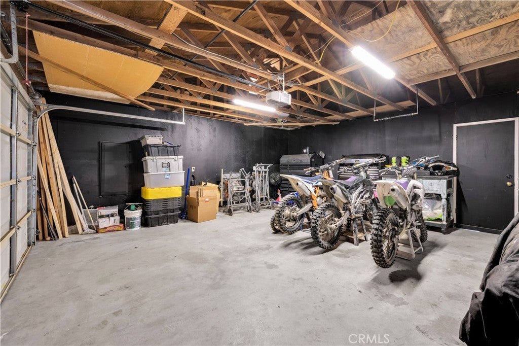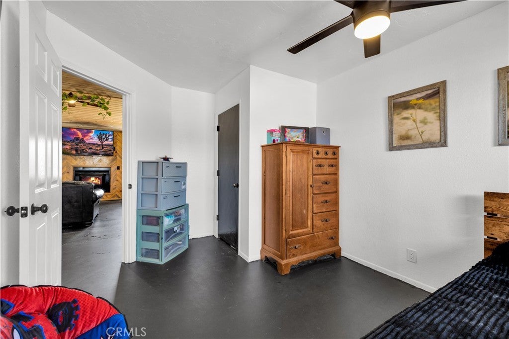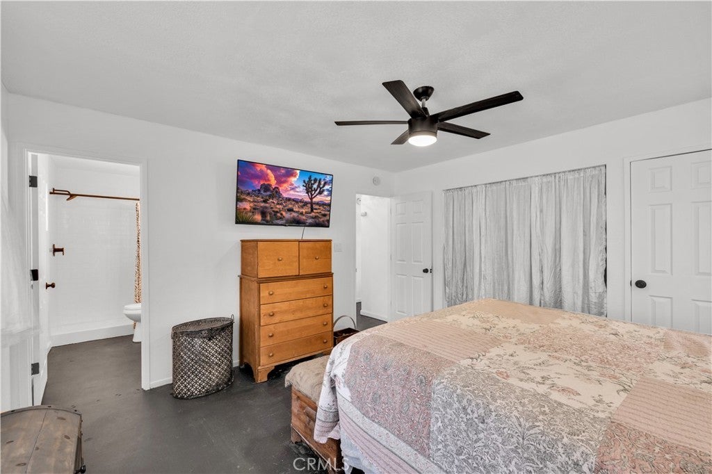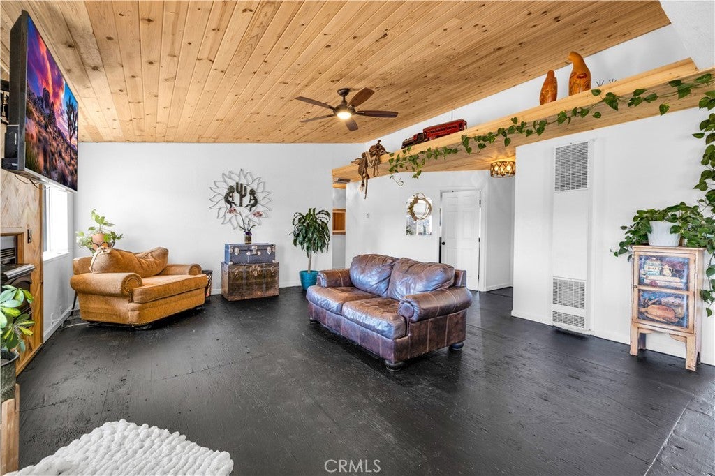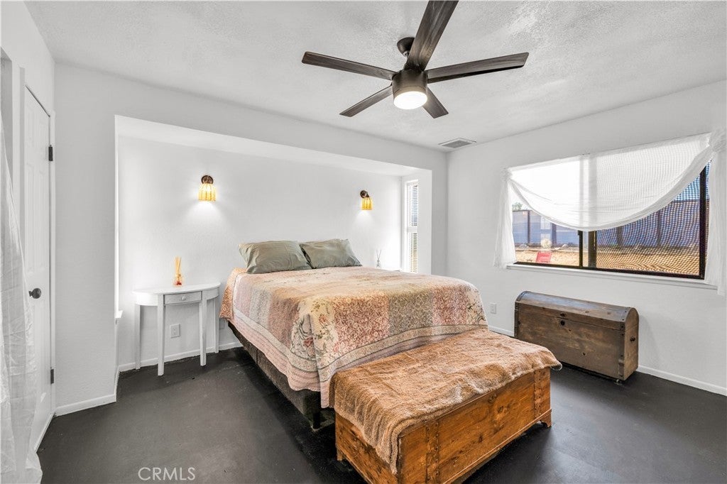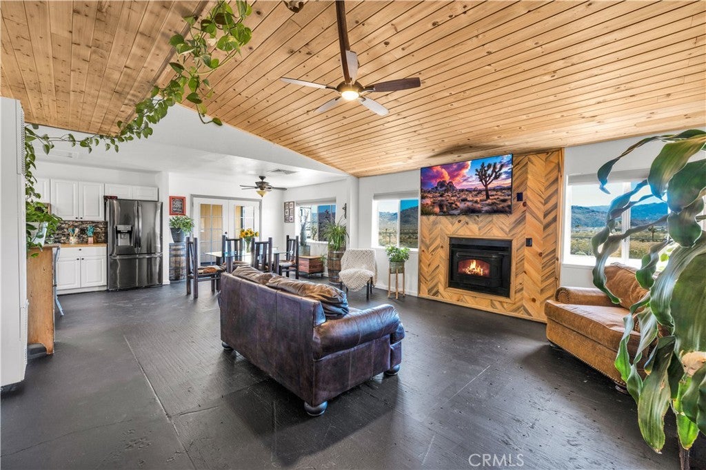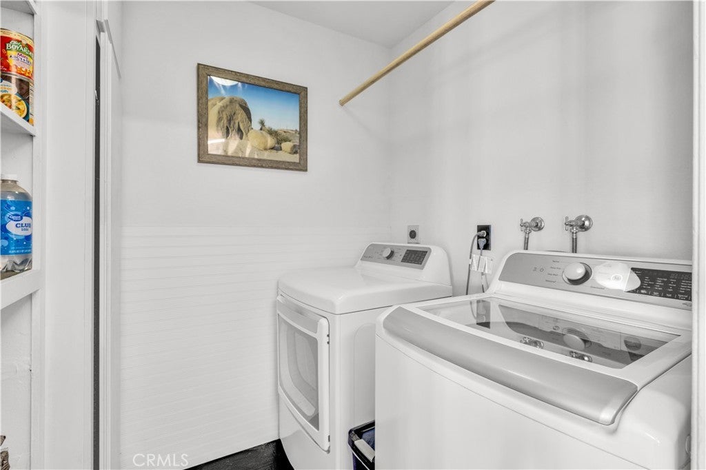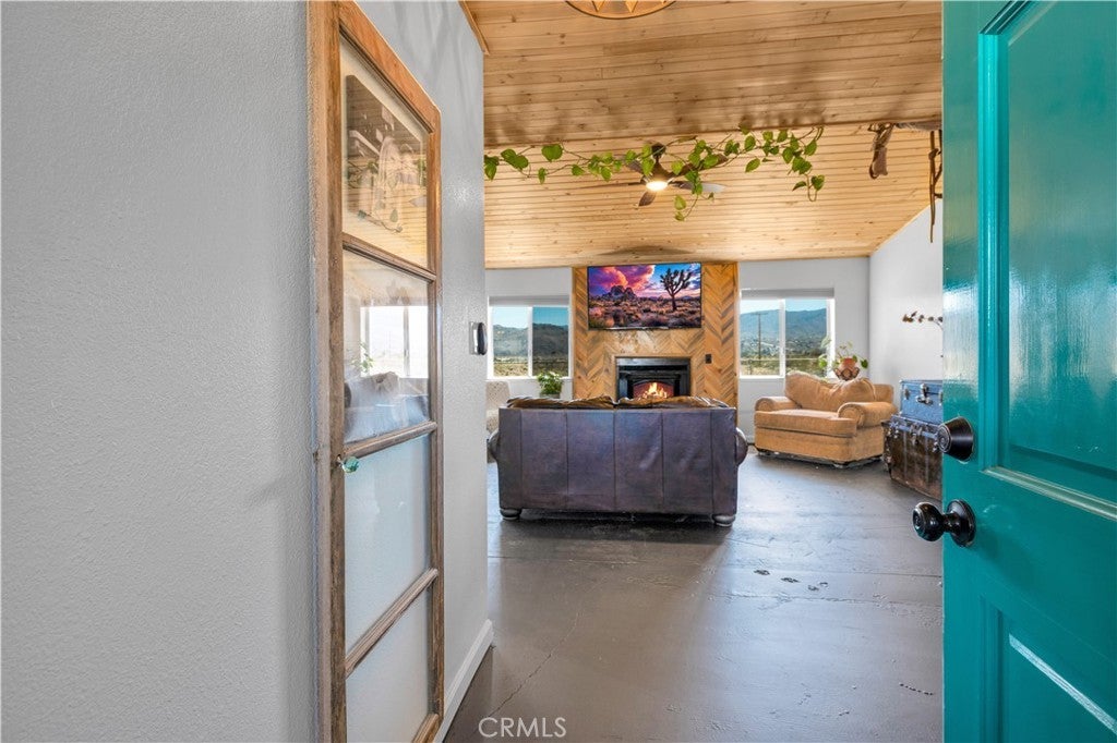 This spacious 3-bedroom, 2-bath home sits on a large corner lot and offers incredible views of the surrounding mountains near Joshua Tree National Park. As you approach the property, you’ll appreciate the mature desert landscaping and the abundance of parking. A concrete driveway leads to the attached two-car garage, while a side yard with a drive-through gate provides convenient RV parking with hookups along with plenty of additional space for trailers, vehicles, or desert toys. Before entering the home, you’ll pass through a gated front entry that creates a private courtyard, perfect for enjoying a quiet cup of coffee in the morning. Inside, the home welcomes you with beautiful vaulted tongue-and-groove ceilings in the living room and large banks of windows that bring in natural light and showcase the stunning mountain views. The open floor plan allows the living room to flow seamlessly into the dining area and kitchen, creating a comfortable and functional layout for everyday living and entertaining. The remodeled kitchen features butcher block countertops, a stylish backsplash, stainless steel appliances, and an island, along with an office desk space just off the kitchen. Nearby, a multipurpose room serves as both the laundry area and additional pantry or storage space. The primary bedroom is generously sized and offers ample closet storage. The ensuite bathroom has been remodeled and includes a new vanity and a stylish walk-in shower. The two additional bedrooms are both spacious, and the conveniently located guest bathroom has also been updated and features a shower-tub combo. The attached two-car garage includes an additional storage room, providing even more space for tools, equipment, or hobbies. Outside, the fully fenced backyard offers flat, usable space with beautiful views, along with two storage sheds, RV hookups, and a cross-fenced area that creates a large dog run. This home is ideally located close to downtown Joshua Tree, just down the street from Joshua Tree Elementary School, with the bus stop conveniently located right at the corner of the property. Homes with this combination of views, space, RV parking, and location are hard to find—schedule your showing today and come experience everything this property has to offer.