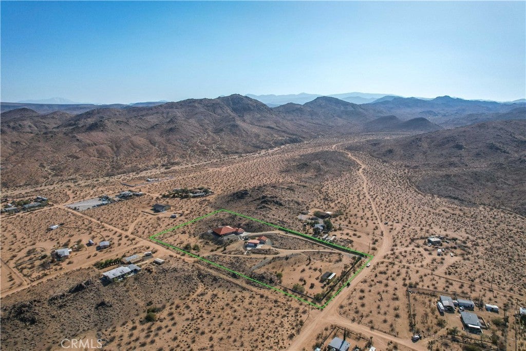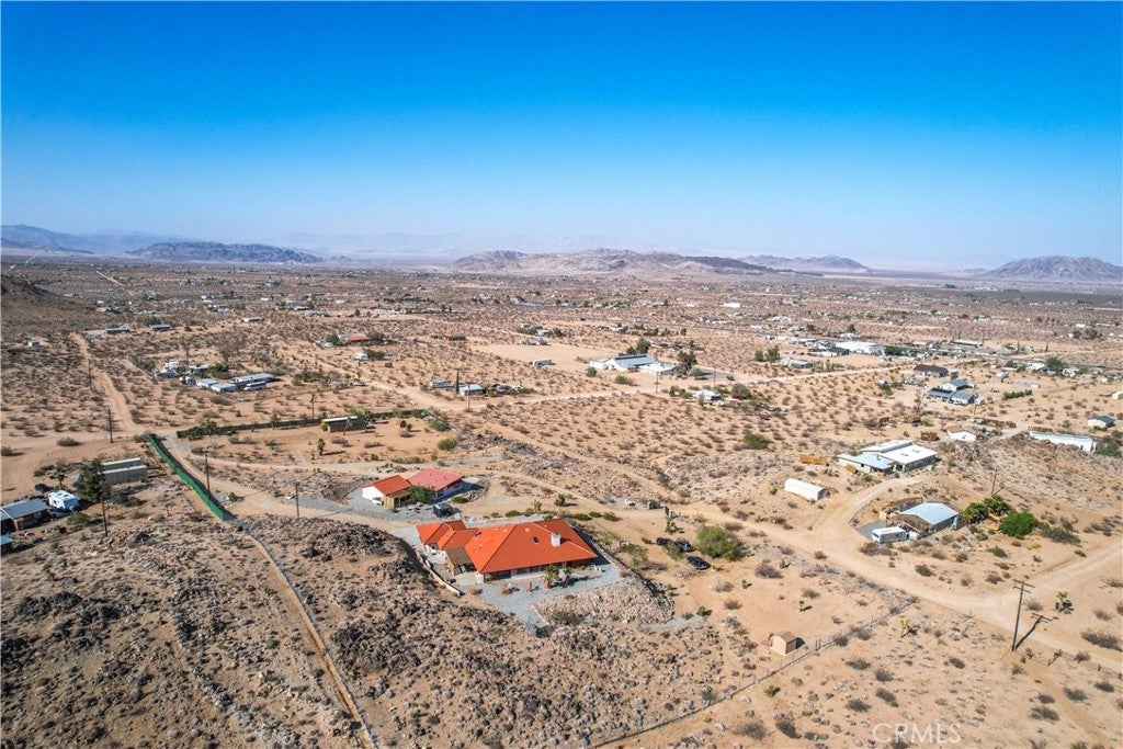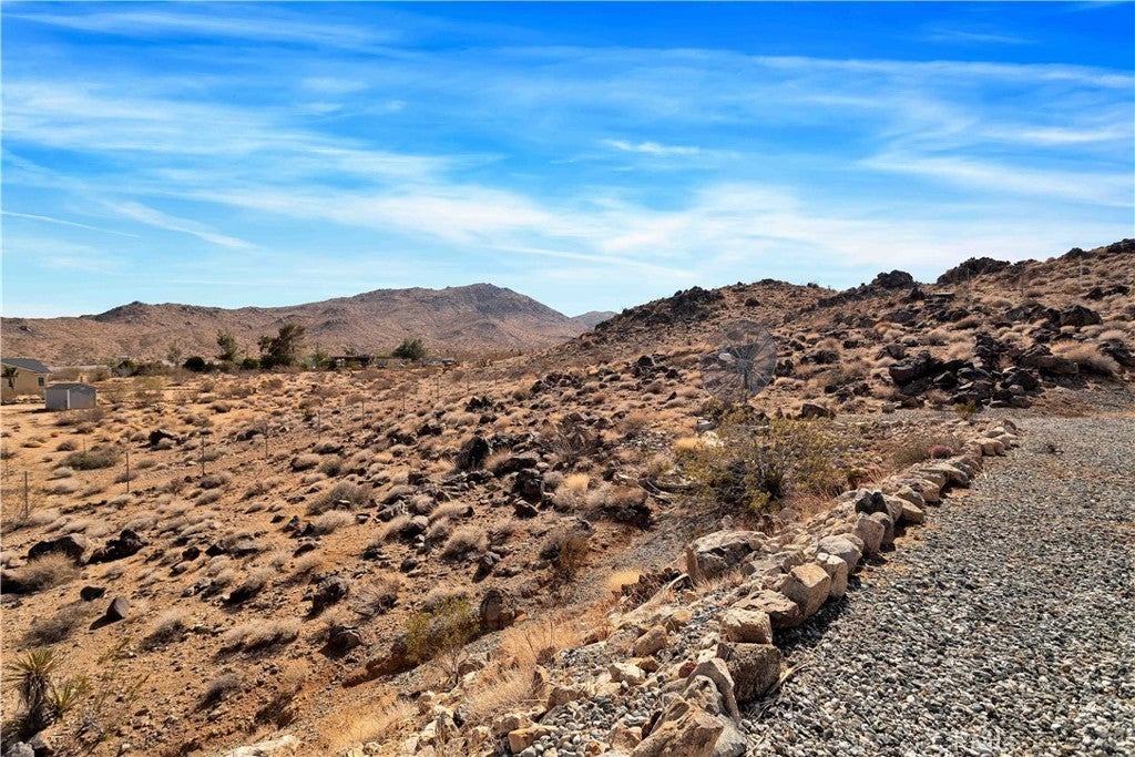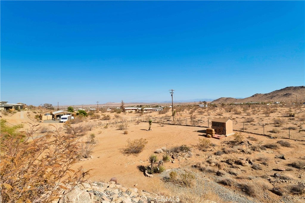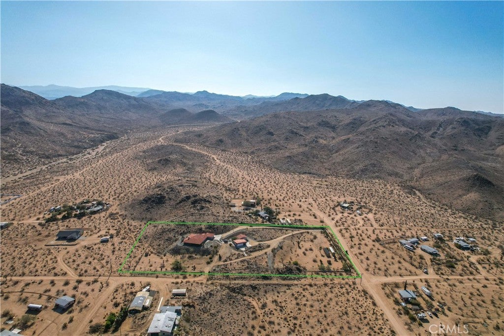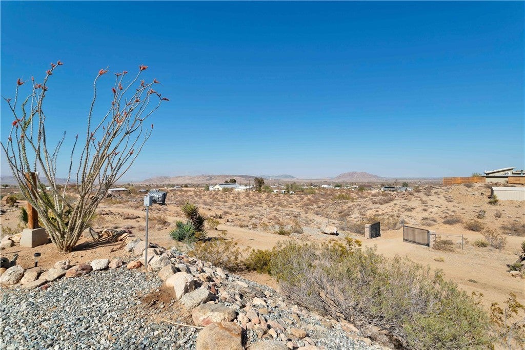 You will be amazed at the stunning views when you arrive. This one-of-a-kind property has two homes nestled against natural rocks. Main home has 2 bedrooms, 2 bathrooms, and a large great room with wood-beamed vaulted ceiling. Extraordinary views from windows on 3 sides. Kitchen has Corian counters with tons of cabinets. L-shape kitchen island has bar seating. Two large bedrooms with 3 walk-in closets. Huge soaking tub in the master bath. There is a south-facing sunroom which is perfect for soaking up the winter sun. The indoor laundry room has plenty of cabinets for all your storage needs. 2 car attached garage. The front patio runs the length of the home and provides endless eastern views. This home is perfect for hosting large parties or gatherings. The 2nd home has 1 bedroom, 1 bath with an enclosed porch. It also has it's own detached 2 car garage. The views from this 2nd home are incredible as well. The entire property of 5 acres is fully fenced with two gated entrances. Property is dotted with Joshua Trees, Palm Trees, Palo Verde trees, and Mojave Yuccas. Natural desert wildlife can often be seen, such as Quail, Rabbits, Coyotes and more. Landers is home to the Integraton, La Copine restaurant and world-famous Gublers Orchids. Popular riding trails nearby. Joshua Tree National Park is a mere 25 minutes away. Big Bear is 1 hour drive. This amazing property is perfect for vacation rental, wedding venue or other creative ideas. Live in one and rent the other. Many possibilities. Make your appointment to view today. Buyer to verify details and zoning etc.