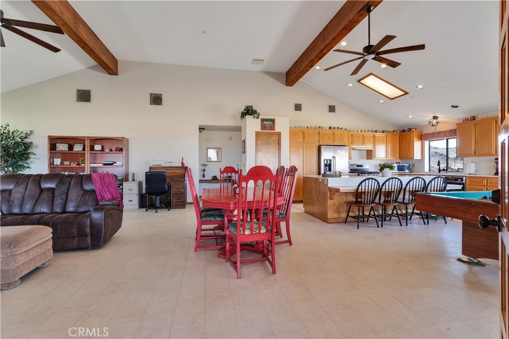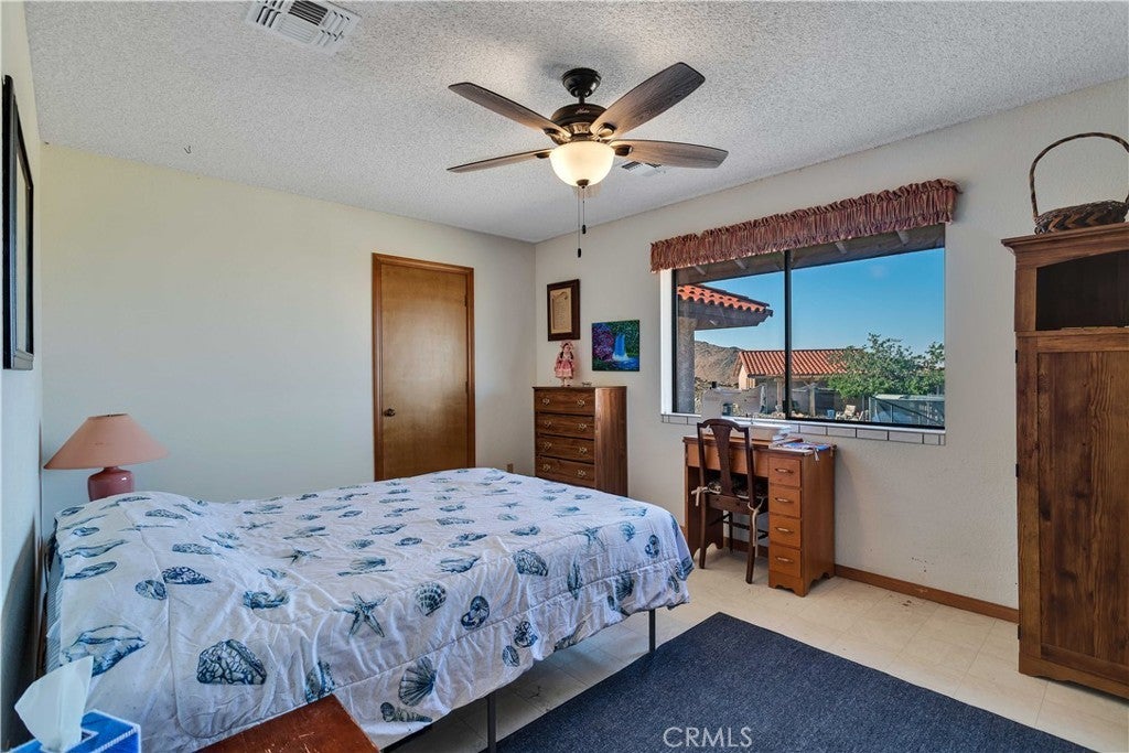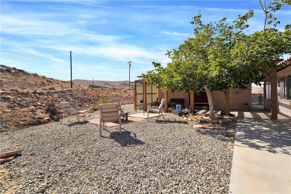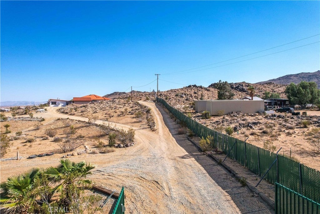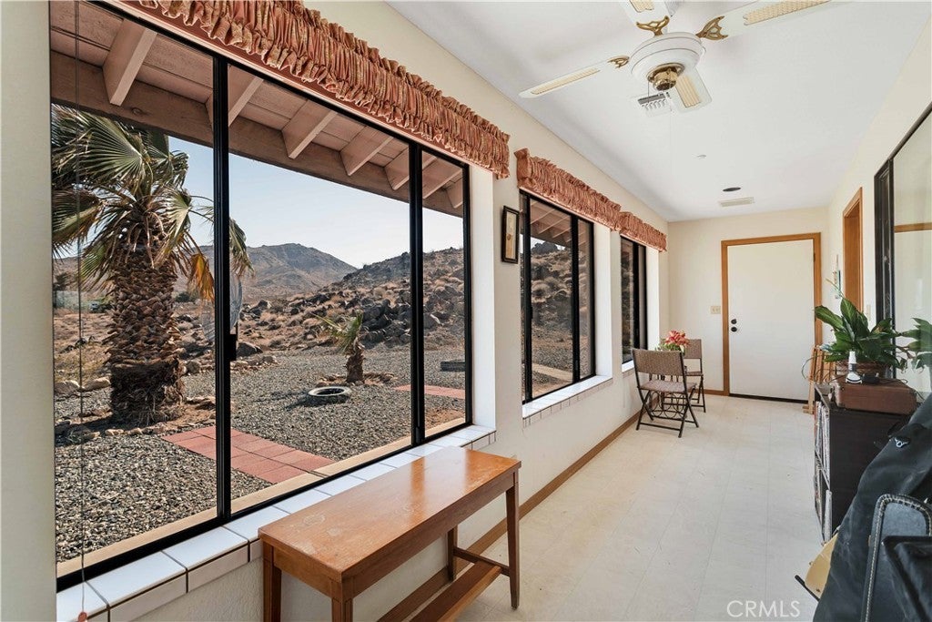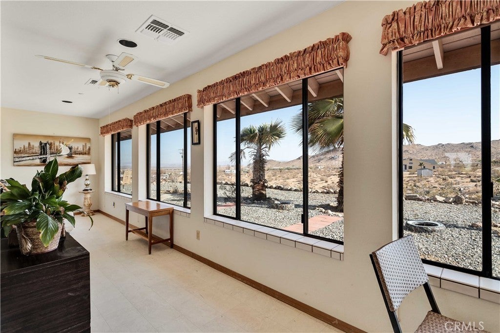 You will be amazed at the stunning views when you arrive. This one-of-a-kind property has two homes nestled against natural rocks. Main home has 2 bedrooms, 2 bathrooms, and a large great room with wood-beamed vaulted ceiling. Extraordinary views from windows on 3 sides. Kitchen has Corian counters with tons of cabinets. L-shape kitchen island has bar seating. Two large bedrooms with 3 walk-in closets. Huge soaking tub in the master bath. There is a south-facing sunroom which is perfect for soaking up the winter sun. The indoor laundry room has plenty of cabinets for all your storage needs. 2 car attached garage. The front patio runs the length of the home and provides endless eastern views. This home is perfect for hosting large parties or gatherings. The 2nd home has 1 bedroom, 1 bath with an enclosed porch. It also has it's own detached 2 car garage. The views from this 2nd home are incredible as well. The entire property of 5 acres is fully fenced with two gated entrances. Property is dotted with Joshua Trees, Palm Trees, Palo Verde trees, and Mojave Yuccas. Natural desert wildlife can often be seen, such as Quail, Rabbits, Coyotes and more. Landers is home to the Integraton, La Copine restaurant and world-famous Gublers Orchids. Popular riding trails nearby. Joshua Tree National Park is a mere 25 minutes away. Big Bear is 1 hour drive. This amazing property is perfect for vacation rental, wedding venue or other creative ideas. Live in one and rent the other. Many possibilities. Make your appointment to view today. Buyer to verify details and zoning etc.