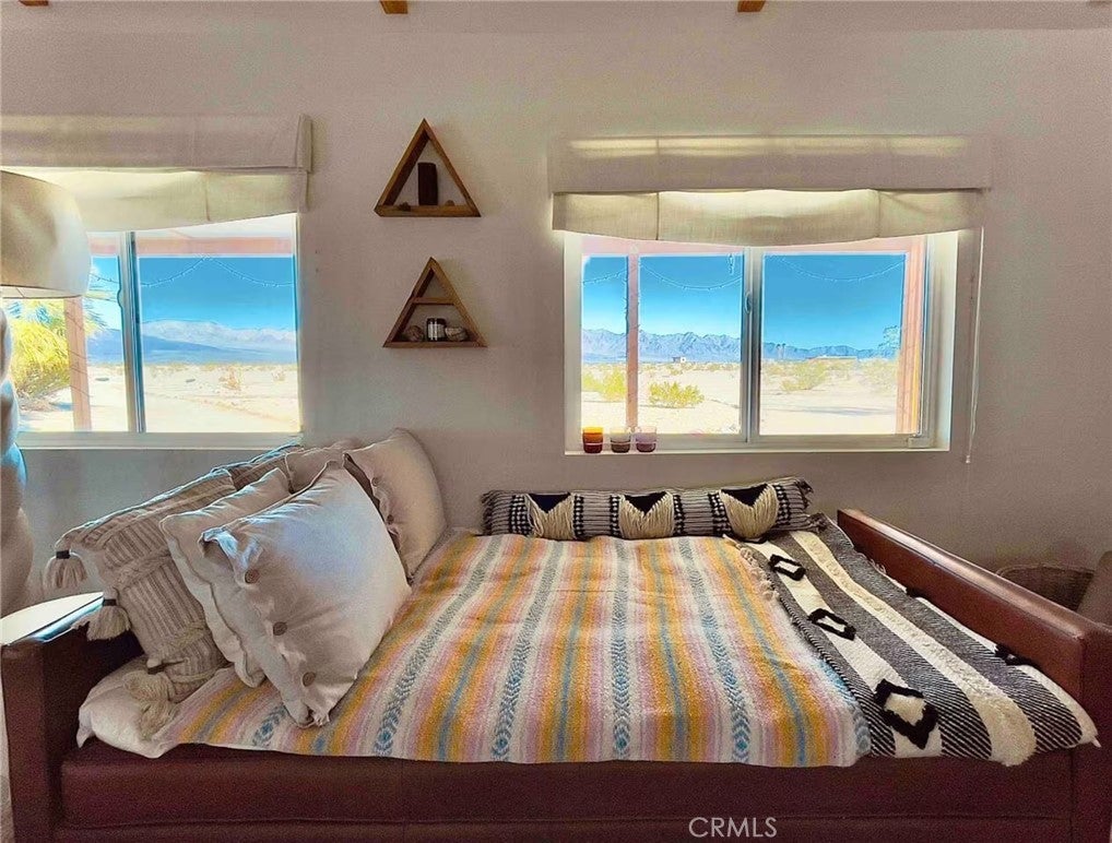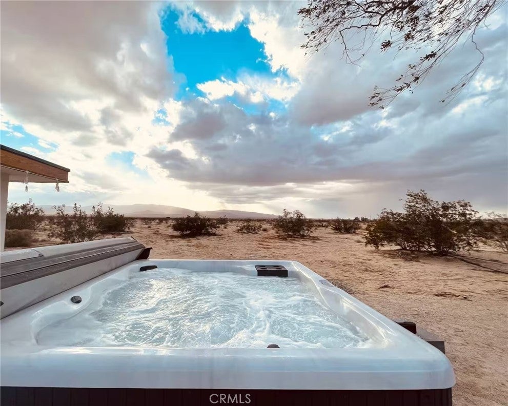 WONDER VALLEY SPECTACULAR: Meticulously crafted, updated, remodeled & reimagined home in the heart of the desert. WALKING DISTANCE to The Palms – the legendary roadhouse on Amboy Road filled with lore of fabulously talented famous and not-so-famous musicians playing their hearts out. Every surface inside and outside the home has been upgraded or painted. NEW ROOF. NEW SEPTIC. Tankless water-heater. Ductless mini-split AC/Heating in both bedrooms and living room. Santa Barbara smooth stucco exterior. Sold fully furnished. Includes a hot tub and the best interior bathroom in Wonder Valley. 5-BIG RURAL ACRES. Zoned SFR and currently used parttime as an Airbnb and vacation getaway.