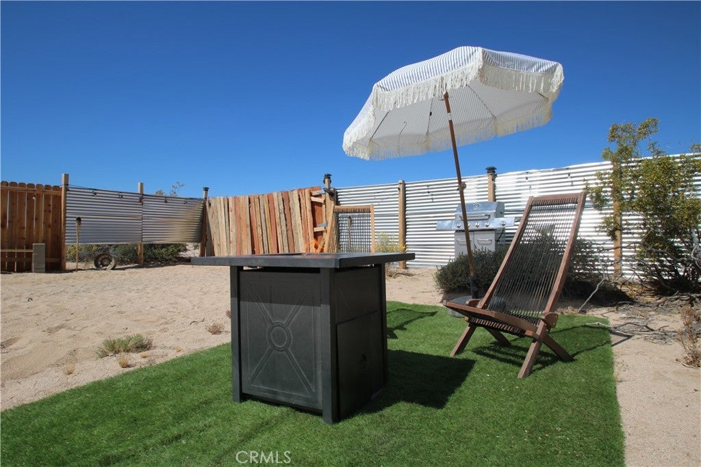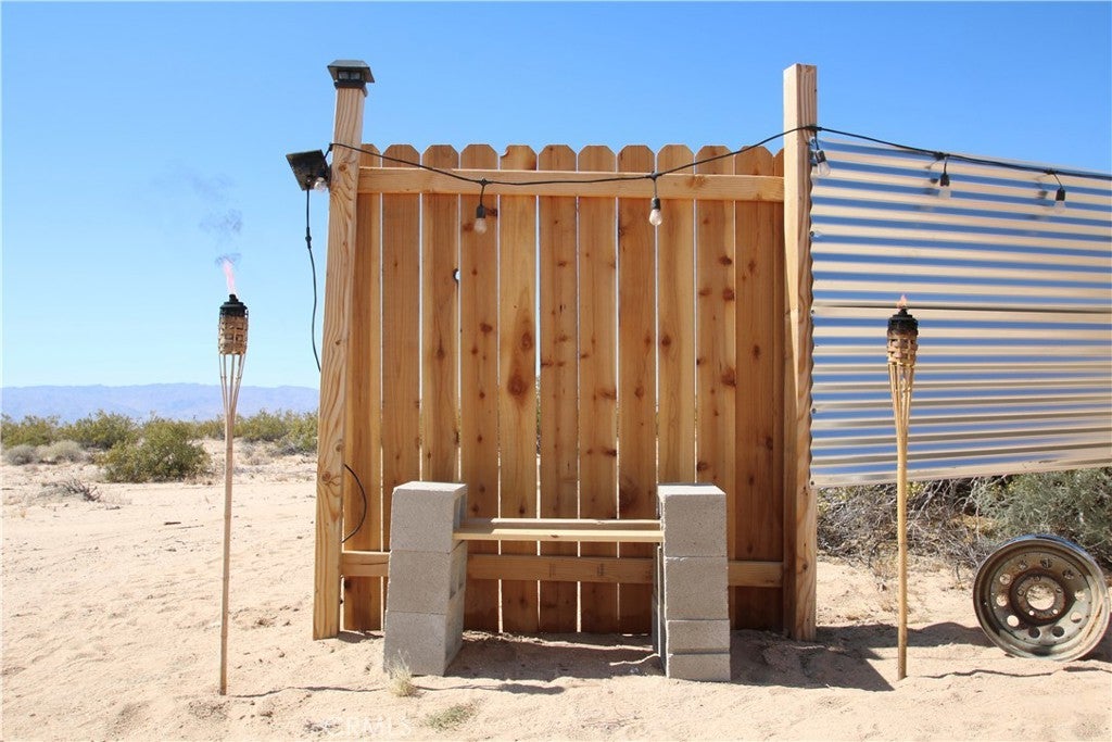 Encompassing 2.5 acres of prime land in the picturesque desert landscape of 29 Palms, this property embodies the essence of tranquility and possibility. Situated near water and electricity sources, this lot offers the convenience of nearby utilities while still retaining a sense of seclusion and serenity. Accessible via a well-maintained road that does not demand a 4WD/AWD vehicle, this property ensures ease of access for your everyday needs. A fenced area with a secure gate provides both security and privacy, while a designated fire pit and cooking area invite you to embrace outdoor living at its finest. Leading you to your own piece of desert paradise, this property is in close proximity to the renowned Joshua Tree National Park, offering endless opportunities for exploration and adventure right at your doorstep. Immerse yourself in the beauty of the desert landscape and make this land your canvas for future dreams and endeavors.