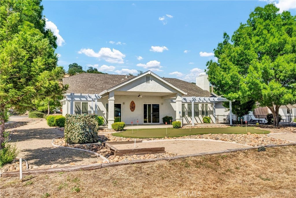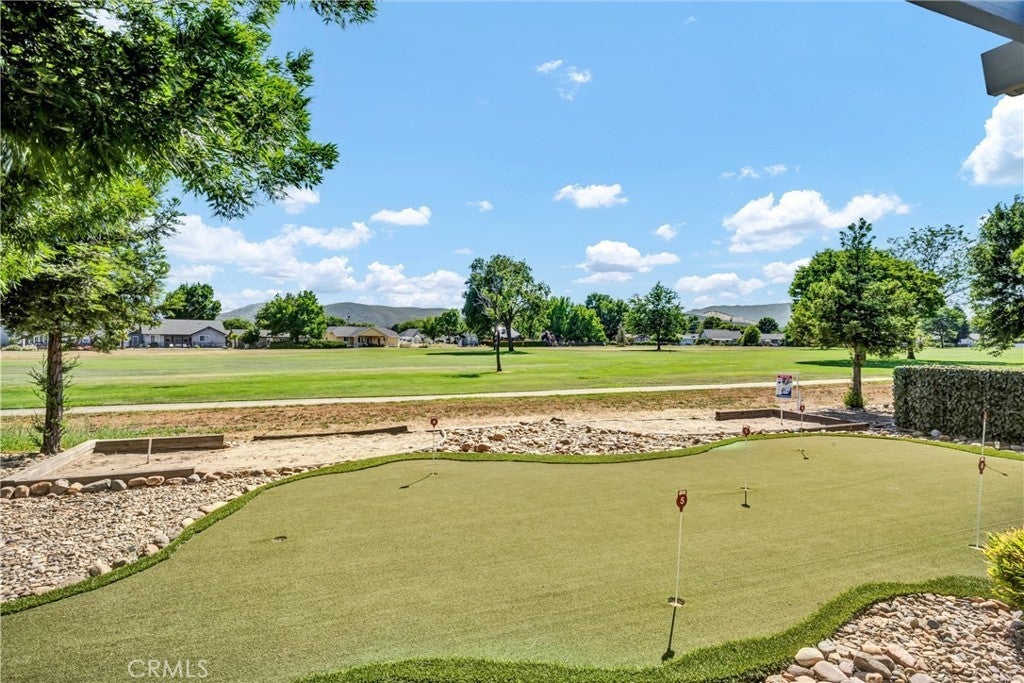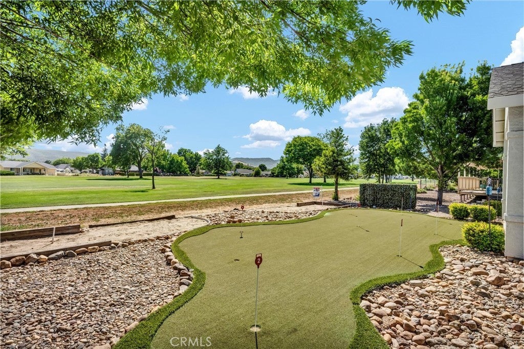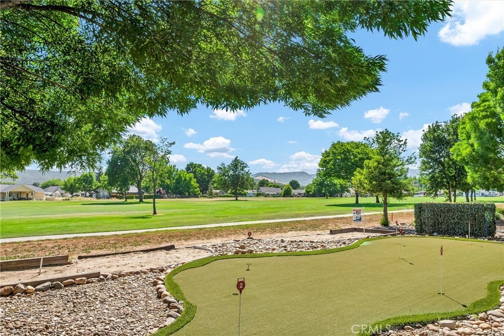 HUGE REDUCTION!! PRICED TO SELL! Situated on the 3rd Fairway at Hidden Valley Lake's Championship Golf Course, this 3 bed / 2 bath single level home offers 1,807 SF of spacious living space. Beautiful stucco home with new exterior paint and low maintenance landscaping will catch your eye from the road. Large level driveway with plenty of room for parking + a 3 car garage for your vehicles, golf cart or storage! The tiled entry leads to the spacious living room with vaulted ceilings and new vinyl plank flooring. Stately propane fireplace with brick hearth is a nice focal point in the space. The kitchen is open to the living room with a center island, tiled countertops and loads of storage cabinetry. Dine at the breakfast bar, dining nook or formal dining room off the entry. Desirable separation floorplan with 2 guest bedrooms & bathroom on one end with primary and full laundry room with utility sink on the other. Access the back patio from the living room or the primary bedroom. The views from the covered patio of lush green grass year round with surrounding hills in the distance will never get old! Up for some competition? A custom 9 hole putting green with fringe for chipping or the built-in horseshoe pit provides endless outdoor entertainment! The primary bedroom has plush carpet, a ceiling fan and an ensuite bathroom with large walk-in closet + built-ins, new vinyl plank flooring, large walk-in shower, soaking tub and dual sink vanity. This well maintained home shows pride of ownership, add it to your list today!
