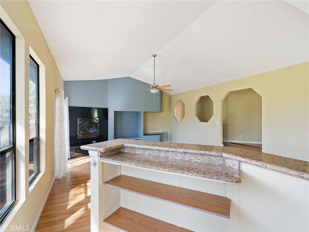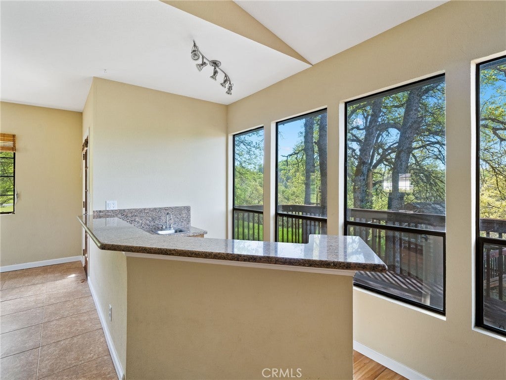 • Interior FeaturesBreakfast Area, Living Room Deck Attached, Bedroom on Main Level, Main Level Primary, Primary Suite, Bar, Cathedral Ceiling(s), Granite Counters, High Ceilings, Storage