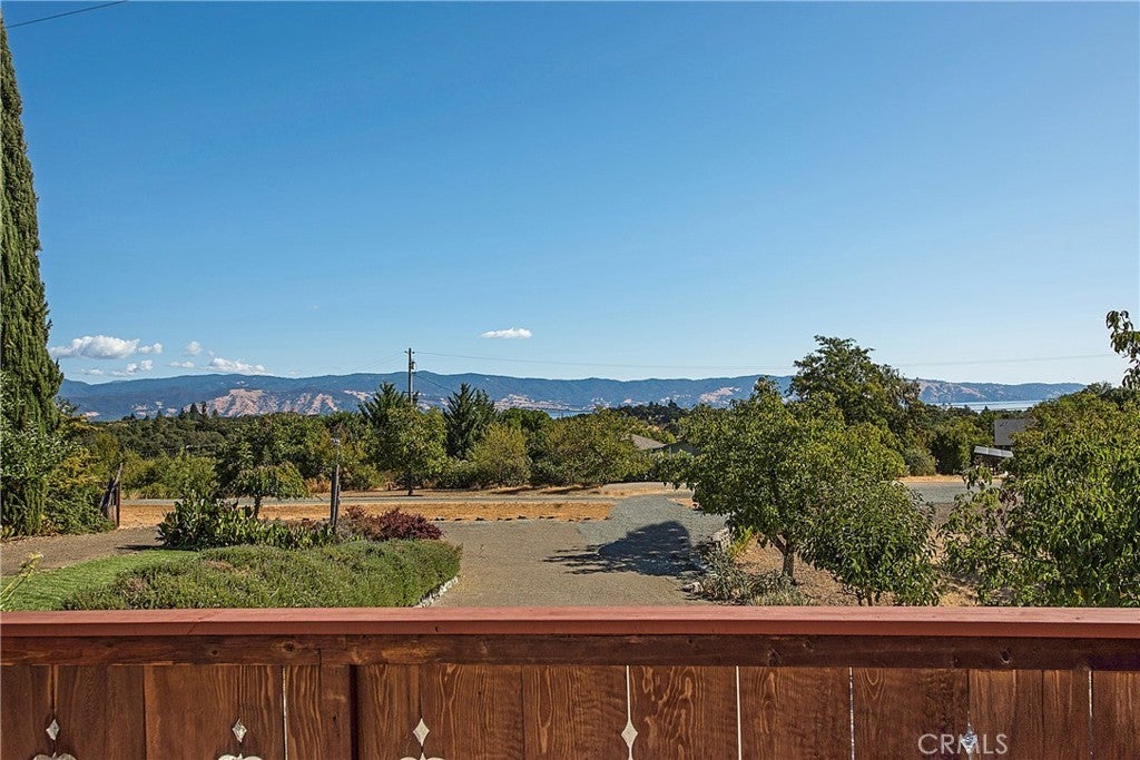Large & lovely Chalet style home on 1 acre in Lakeport! Complete with a beautiful lake and Mt. Konocti view, this well maintained 4bed/3bath approx. 2497sqft home is perfect for so many different buyers. Main level of home features a nice open kitchen, large living room, office, laundry room, & a fantastic attached deck looking out towards the Lake and hills. Upper level includes primary bed/bath & two guest bedrooms (great layout for kids room with a neat design and pine walls!) & guest bathroom. Lower level features a locked off IN-LAW type unit with 1 full bedroom, living area (currently used as gym room) 1 full bath, & a full kitchen. Perfect set up for the in laws, teenager space, or even a vacation/short term rental unit! Has separate entrance, but can also be accessed from the main home if you'd prefer. All electric home with OWNED & paid for SOLAR. Huge yard, fenced garden area, & lots of parking with room for travel trailer/RV, plus attached 2 car garage. Includes TWO detached nice storage sheds. Convenient location, right outside of Lakeport City limits, but only about 2 minutes drive to Main Street or Hwy 29.Tons of value here with this large & even home on some land! Full reports on file 2025.