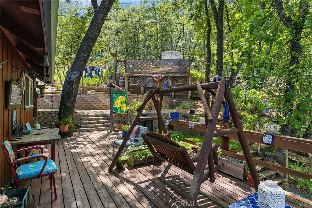 BACK ON THE MARKET (See private remarks) PRIDE OF OWNERSHIP! OWNER HAS JUST REFINISHED THE TOP DECK, READY FOR YOUR FAMILY HOLIDAY GATHERING! Live the peaceful and tranquil lifestyle in harmony with nature. This 3-bedroom 2 bath with loft sits on three lots (Not Merged) in middle of a natural wildlife corridor. Lies the abundant wildlife on a daily basis. Watch the deer stroll by from the large open decks, or watch the wild turkeys gather to roost in the trees outside the large windows from the comfort of your living room. You won't have to worry about seeing the neighbors (Very Private). Endless possibilities for entertainment on the split-level decks, approx. 750sqft upper deck, 750sqft lower deck, all shaded by oak trees in the hot summer months. This home also has many upgrades: Jacuzzi bathtub, Custom shaker style hickory cabinets, newer appliances, in a gally style kitchen. Open beam, lodge style living area with plenty of natural light from several windows. there is also a 325SQ FT Open space downstairs room with its own bathroom/shower and kitchenette and its own entrance, could be used as a rental or many other possibilities. Also included is a 10ft X 20 ft shop and a 6ft X 12 ft garden/kennel shed fenced area. Property is close to many amenities: Walking distance to Riviera Height HOA, swimming and clubhouse, a few driving minutes to Konocti Harbor, wineries, dinning and Lake access.
