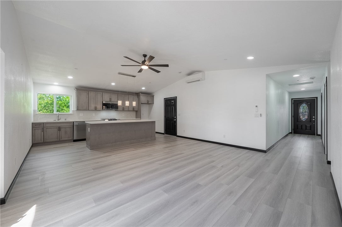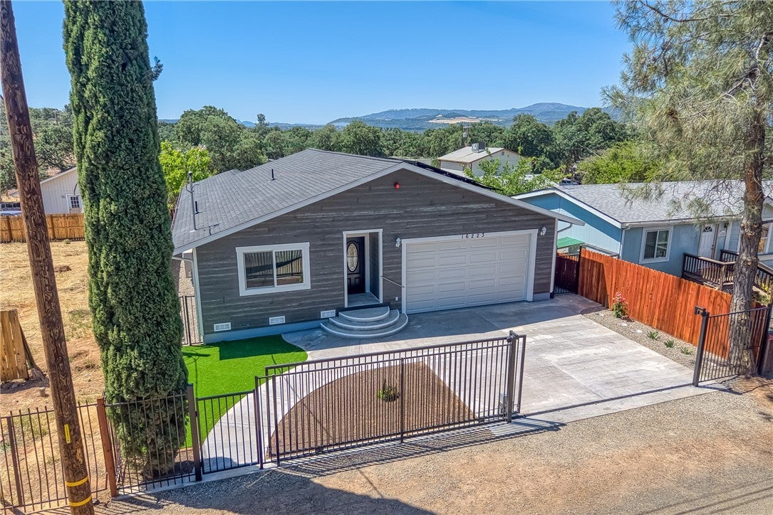 Stunning brand-new custom single-story home with detached ADU nestled in tranquil Clearlake. This welcoming and well-designed, SOLAR OWNED, 3-bedroom, 2-bathroom home offers 1,688 sq ft of thoughtfully planned living space. The expansive kitchen features a 9x3' granite island, granite countertops and backsplash, stainless steel appliances, an electric stove, and ample cabinetry—perfect for cooking and entertaining. The bright and airy great room flows seamlessly into the calming owner’s suite, complete with a spacious walk-in closet and a beautifully finished private bathroom. The guest bathroom includes a stylish double-sink vanity for added convenience. Step outside to the sunny backyard with stone ground, ready for your creative touch. The detached 160 sq ft ADU includes a modern 3/4 bathroom, making it ideal for guests, a home office, or rental income. Additional features include a remote-controlled security gate, low-maintenance front yard, energy-efficient tankless water heater, and oversized garage with EVS charging receptacle. Enjoy California’s cleanest air and nearby Clear Lake, a haven for boating, fishing, hiking, and outdoor fun. All just minutes from shopping, dining, and schools.