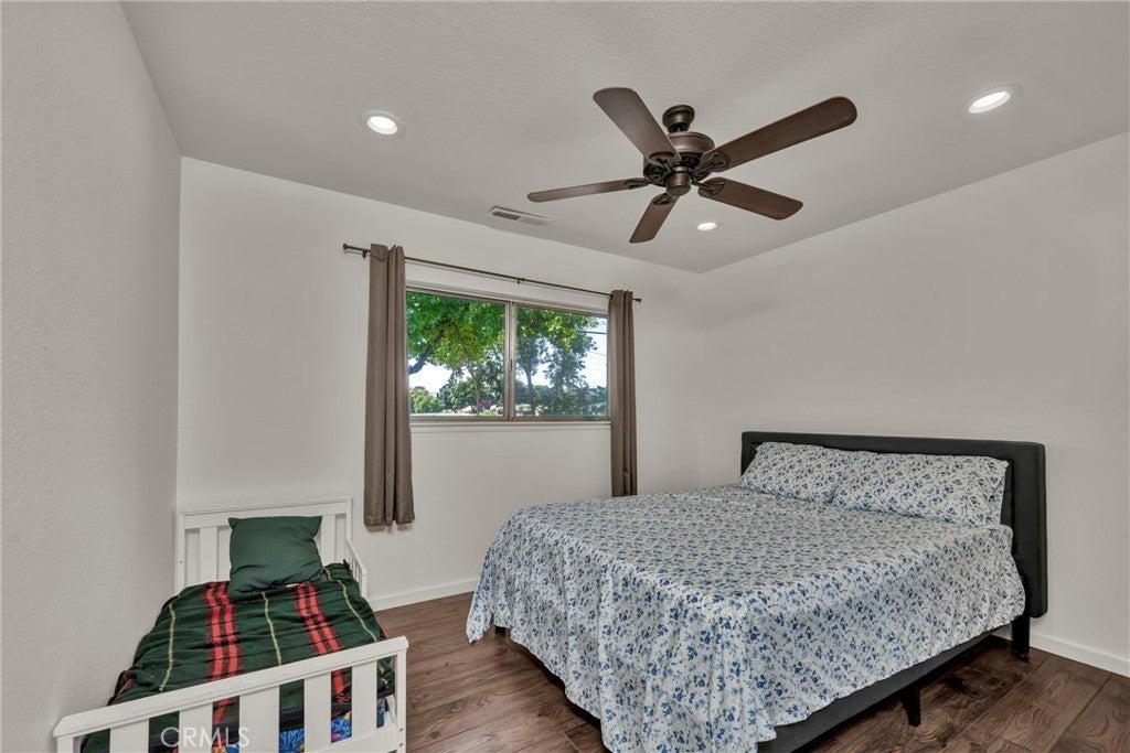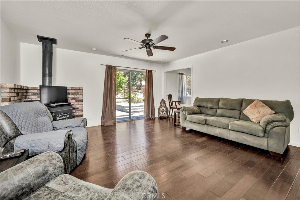 Charming 3-Bedroom Home on Expansive Lot with Upgraded Features & Outdoor Potential Welcome to this inviting 3-bedroom, 2-bath home, situated on a generous over 1/3-acre lot, offering both comfort and room to grow. The fully fenced backyard features a spacious patio area, perfect for entertaining, gardening, or simply relaxing under the stars. Step inside to find engineered wood flooring, recessed lighting, and a cozy wood-burning stove that adds warmth and charm to the living space. A sliding glass door opens to the back patio, making indoor-outdoor living easy and enjoyable. The upgraded kitchen offers newer cabinetry, stainless steel appliances, a breakfast bar, and a sunny dining area—ideal for everyday meals or casual gatherings. Both bathrooms have been updated with modern vanities and tile flooring, including a comfortable primary suite with its own private bath. The property has beautiful shade trees in the front, providing privacy and a welcoming first impression. With its modern touches, functional layout, and ample outdoor space, this home offers the perfect balance of style and serenity.