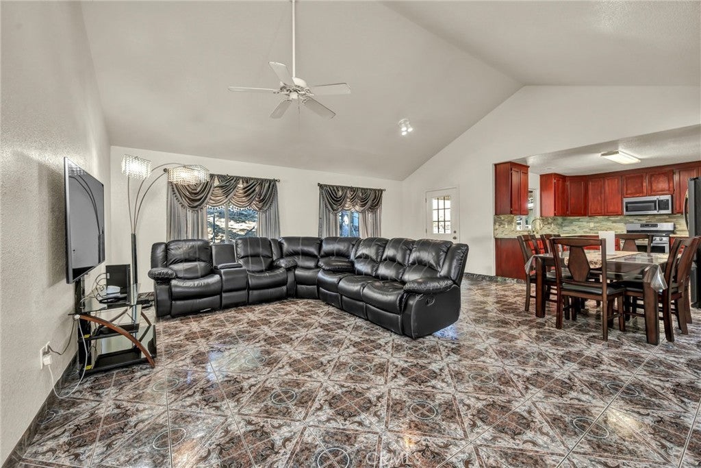 Welcome to 18230 Hidden Valley Road, an updated 3-bedroom, 2-bathroom home offering 1,520 square feet of comfortable living in the desirable community of Hidden Valley Lake. Built in 2001 and thoughtfully upgraded, this home blends modern finishes with functional design. Step inside to find durable tile flooring throughout the main living spaces, perfect for easy maintenance and a cohesive flow. The spacious living room features soaring vaulted ceilings, recessed lighting, and a ceiling fan for comfort year-round. The kitchen is a standout with stainless steel appliances, rich granite countertops, and a striking stacked stone backsplash. Ample cabinetry and counter space make it ideal for both everyday use and entertaining. The primary bedroom offers private outdoor access—perfect for morning coffee or evening relaxation. The en-suite bathroom features a dual sink vanity and a large walk-in tiled shower for a spa-like experience. Two additional bedrooms offer flexibility for guests, family, or a home office. The updated guest bathroom also includes a granite countertop and tiled walk-in shower. Convenience continues with an indoor laundry closet and plenty of storage options throughout the home. Outside, enjoy low-maintenance, drought-tolerant landscaping. The fully fenced backyard offers privacy, mature trees for shade, and a covered patio—ideal for outdoor dining or lounging. A second covered patio in the front adds charm and curb appeal. Plenty of parking ensures space for vehicles, guests, or recreational toys. This turnkey property combines comfort, style, and functionality in a great location—don’t miss the opportunity to make it your own! Hidden Vally Lake offers a 102 acre lake with beaches and parks, tennis/pickleball courts, 18 hole championship golf course, equestrian center, community pool, 24 hour security and so much more! Schedule your showing today!