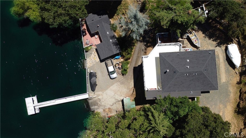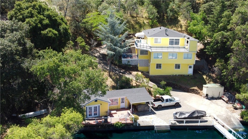 LAKEFRONT WITH TWO HOMES Five bedroom, two bath main home, one bedroom, one bath guest house. Covered dock, boat slip with winch, 100 ft water frontage on a deep water cove with no neighbor on one side. Perfect family-sized vacation getaway or permanent home, with potential for income with separate guest home for either short or long term. Laminate flooring, tile baths, custom concrete counter tops. Wood stove with natural stone backdrop. Family room for games and movies. Wrap around decks opening off the living room, including an outdoor deck bar to take in the spectacular natural location with total seclusion and quiet. This is the place where you can really let go, on your own, or with friends and family. Memories to be made here. Move in ready, wrap around decks. Brand new roofs on both homes. Catch fish from your own property, or easily get out on the water and explore California's largest natural lake within its borders.