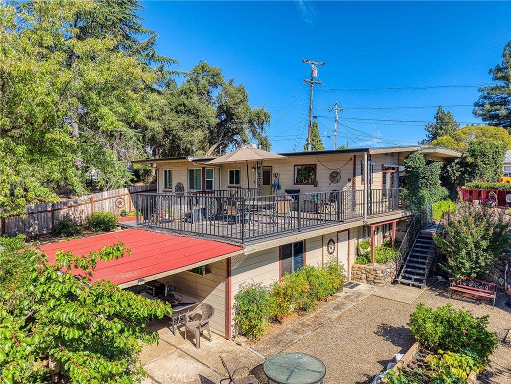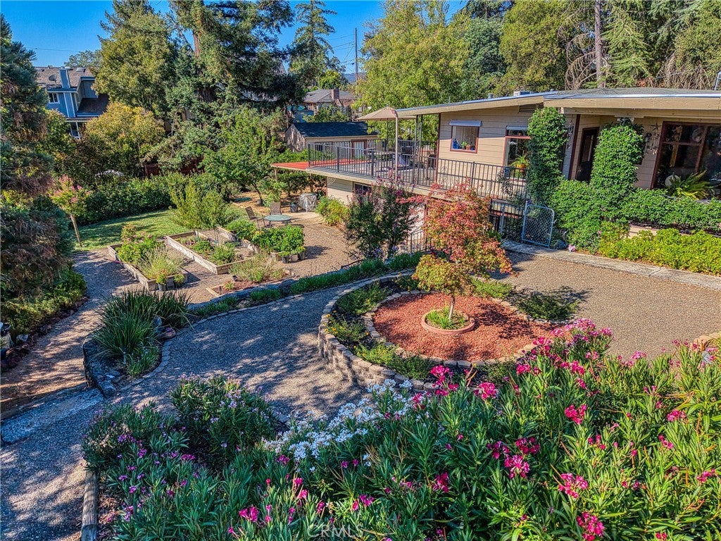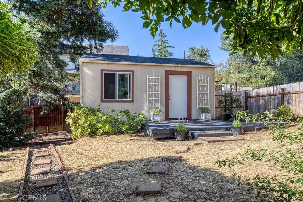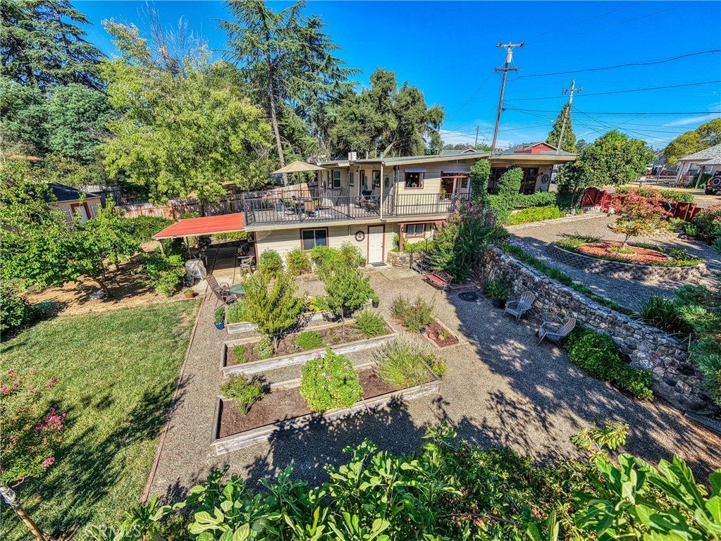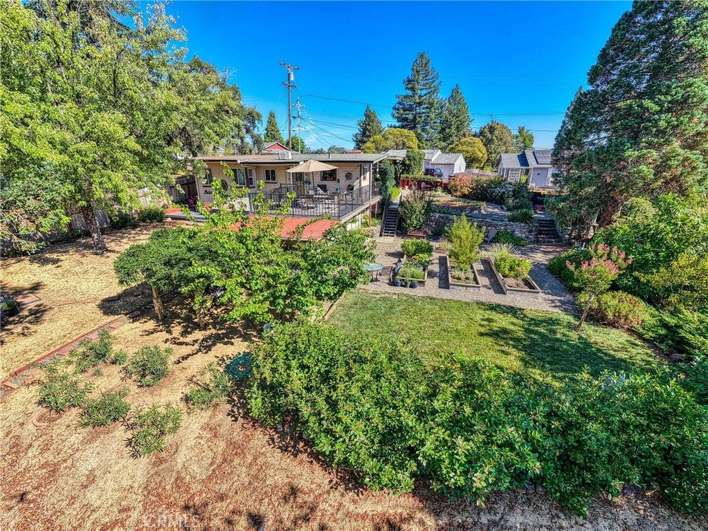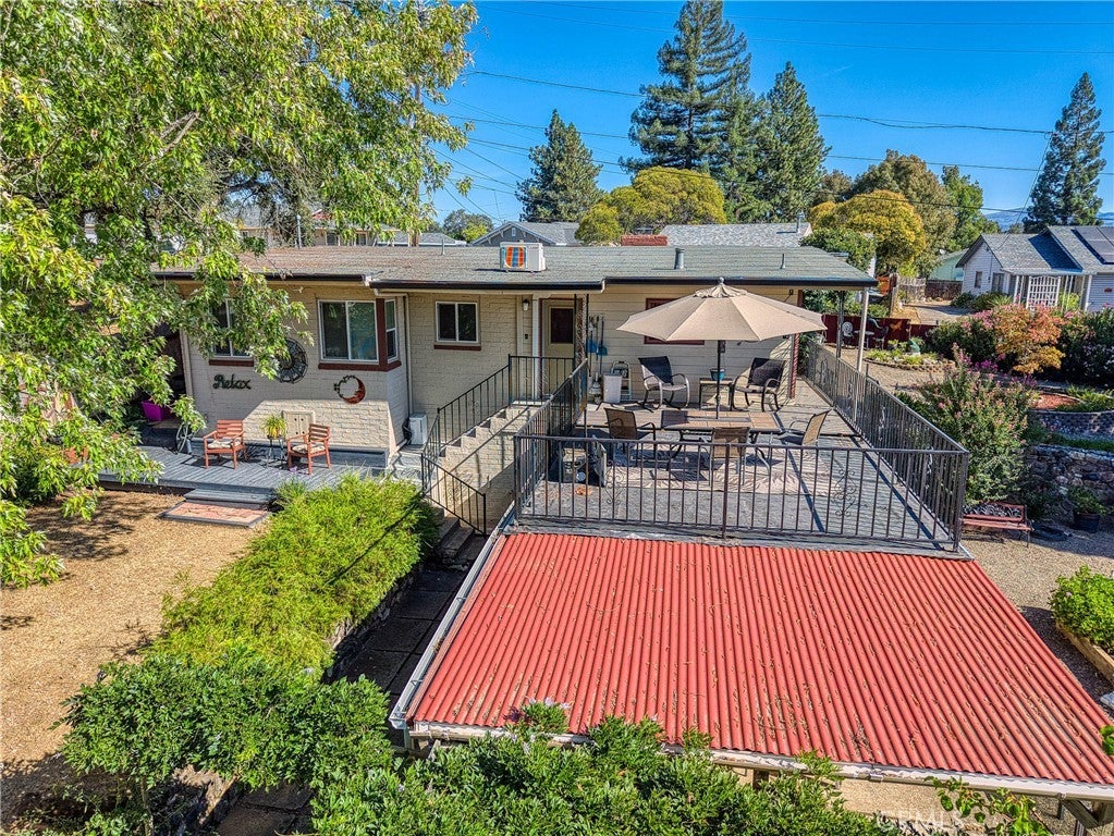 Beautifully landscaped, large, fenced yard in North Lakeport. Great neighborhood. 3-bedrooms, 3-bathrooms on 0.375 of an acre. NEWER ROOF- Roof replaced on home and shed is past 2 years! Main house is a spacious 2-bedroom, 2-bathrooms. Additional 1-bedroom 1-bathroom ADU also. Main house features bamboo flooring throughout. Mini split for heat and air. Living room has a wood stove, ceiling fan, large windows for natural lighting, and built in bookshelves/shelves. Kitchen features granite counter tops, wrap around counters, electric glass cook-top stove, deep sink, dishwasher and ceiling fan. Full guest bathroom with tiled flooring, large vanity, walk-in shower, separate tub, updated window and glass shelves. Stackable washer and dryer in hallway. Nice size guest bedroom with carpet, ceiling fan and a large closet. Large primary bedroom with carpet, ceiling fan and walk-in closet. Primary bathroom features a walk-in shower, dual sink and tile flooring. Covered front porch, large deck in back and lower sitting deck. BONUS ADU separate entrance featuring 1 bedroom with tile flooring, ceiling fan and large closet. 1-bathroom with walk-in tiled shower and tile flooring. Kitchenette featuring a sink, refrigerator, microwave, and living room has a ceiling fan. (Option of furnishings in ADU). Great rental income potential or N-Law unit. The utilities to the ADU run off the main house. Large shed in the back yard with a deck and walk-ways. Green lawn in back yard, lots of plants, flowers, raised beds, and multiple drains. French drains around property, and sump pump system under house. City water and city sewer. Walking distance to downtown Lakeport and close to the schools.