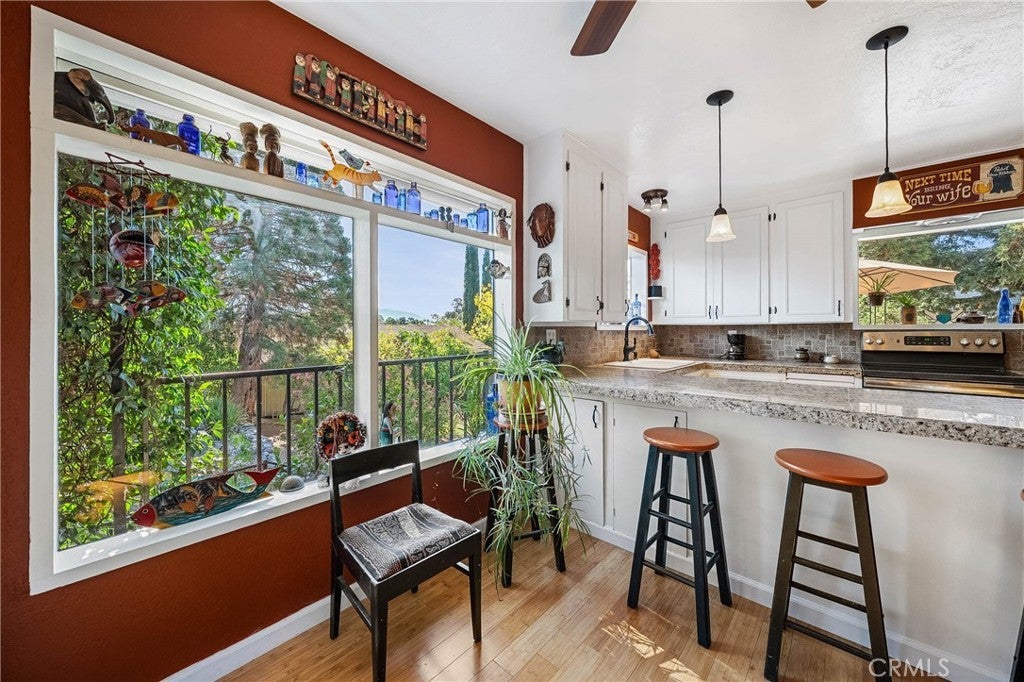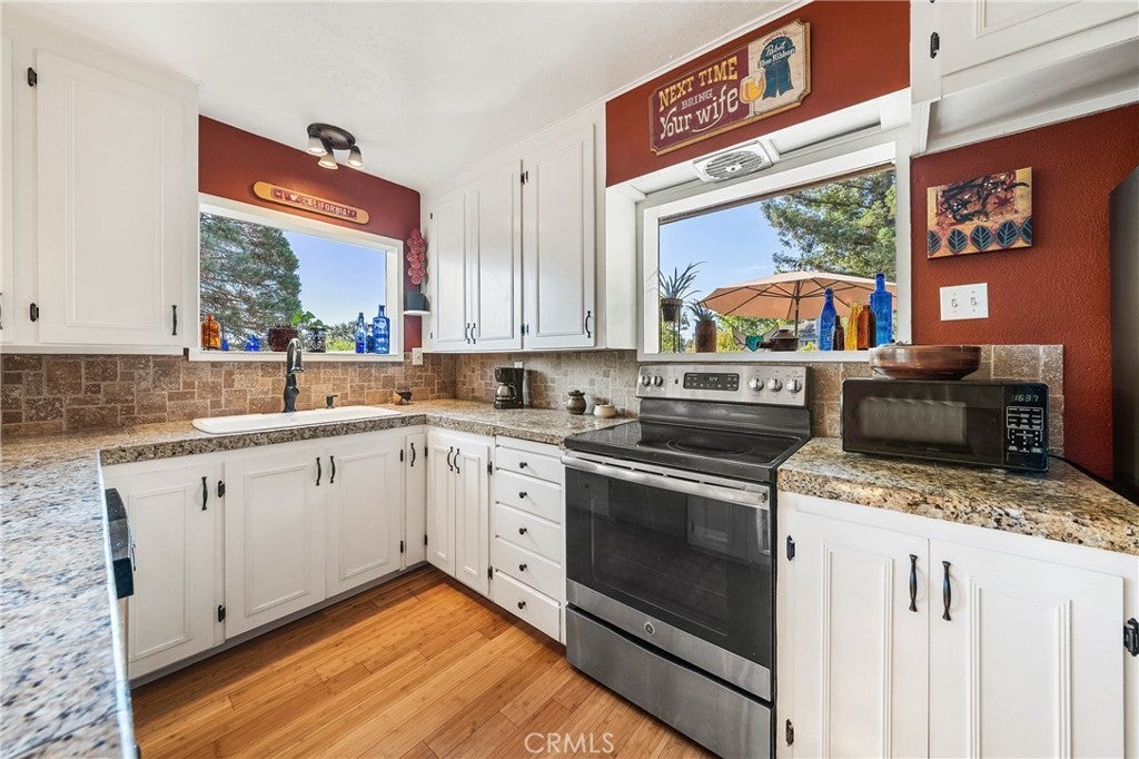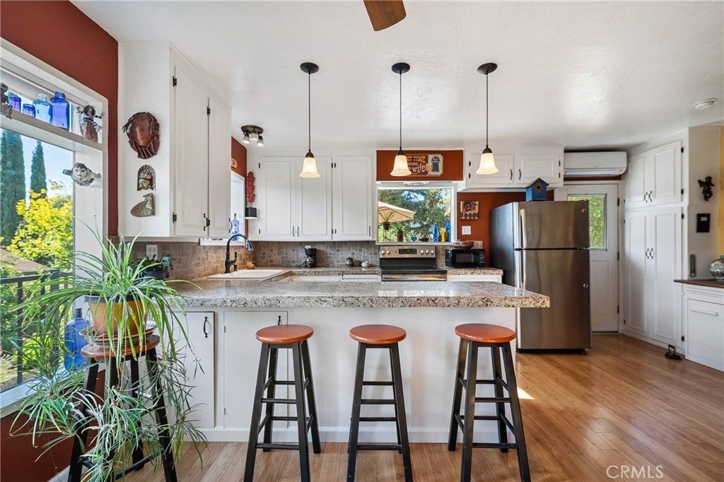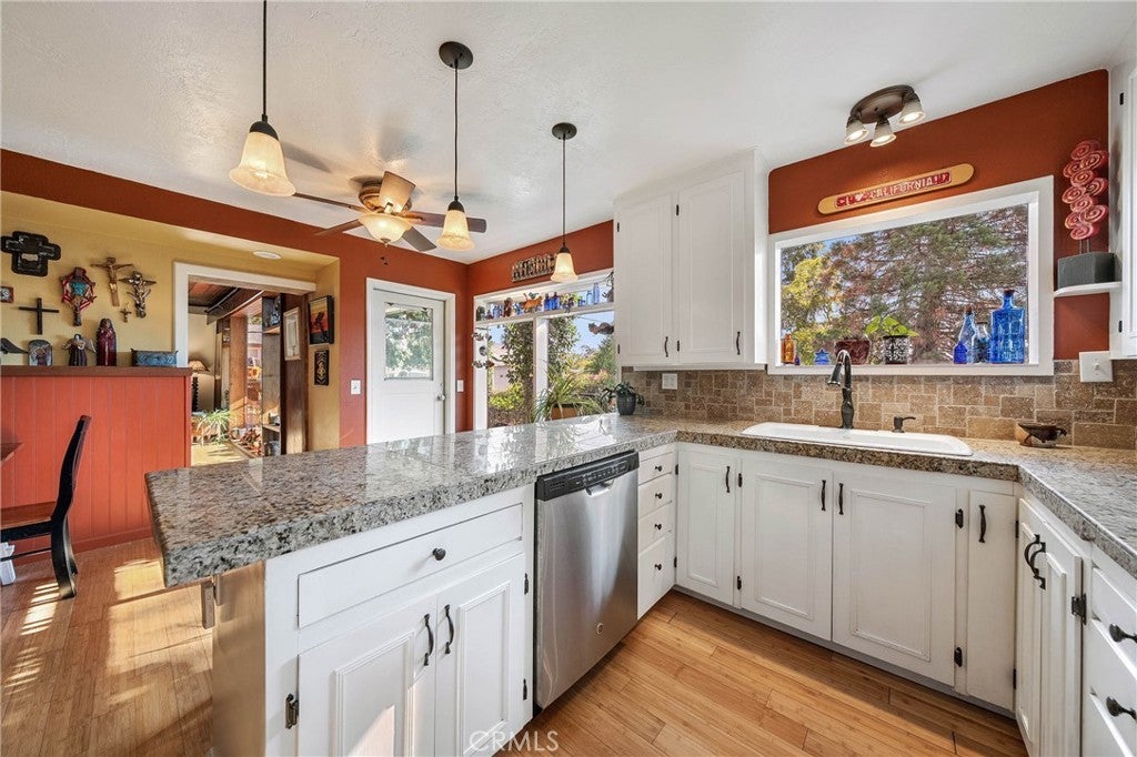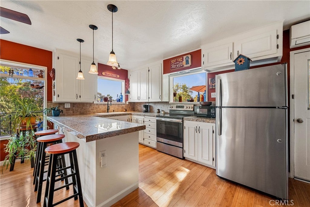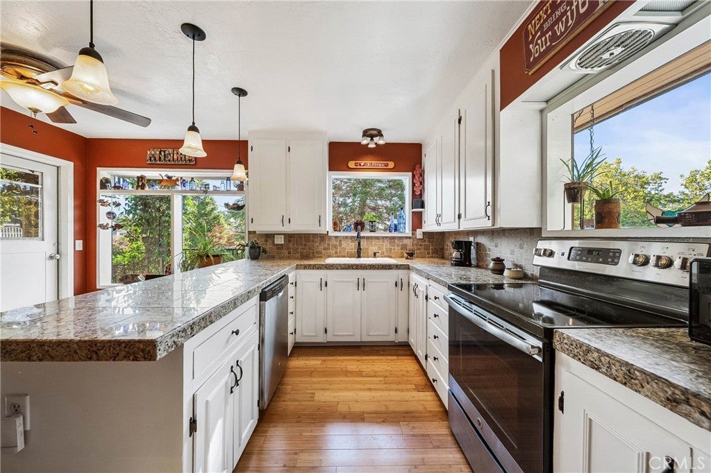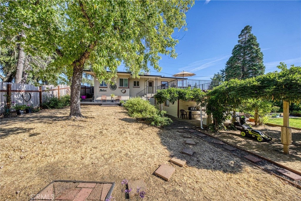 Beautifully landscaped, large, fenced yard in North Lakeport. Great neighborhood. 3-bedrooms, 3-bathrooms on 0.375 of an acre. NEWER ROOF- Roof replaced on home and shed is past 2 years! Main house is a spacious 2-bedroom, 2-bathrooms. Additional 1-bedroom 1-bathroom ADU also. Main house features bamboo flooring throughout. Mini split for heat and air. Living room has a wood stove, ceiling fan, large windows for natural lighting, and built in bookshelves/shelves. Kitchen features granite counter tops, wrap around counters, electric glass cook-top stove, deep sink, dishwasher and ceiling fan. Full guest bathroom with tiled flooring, large vanity, walk-in shower, separate tub, updated window and glass shelves. Stackable washer and dryer in hallway. Nice size guest bedroom with carpet, ceiling fan and a large closet. Large primary bedroom with carpet, ceiling fan and walk-in closet. Primary bathroom features a walk-in shower, dual sink and tile flooring. Covered front porch, large deck in back and lower sitting deck. BONUS ADU separate entrance featuring 1 bedroom with tile flooring, ceiling fan and large closet. 1-bathroom with walk-in tiled shower and tile flooring. Kitchenette featuring a sink, refrigerator, microwave, and living room has a ceiling fan. (Option of furnishings in ADU). Great rental income potential or N-Law unit. The utilities to the ADU run off the main house. Large shed in the back yard with a deck and walk-ways. Green lawn in back yard, lots of plants, flowers, raised beds, and multiple drains. French drains around property, and sump pump system under house. City water and city sewer. Walking distance to downtown Lakeport and close to the schools.