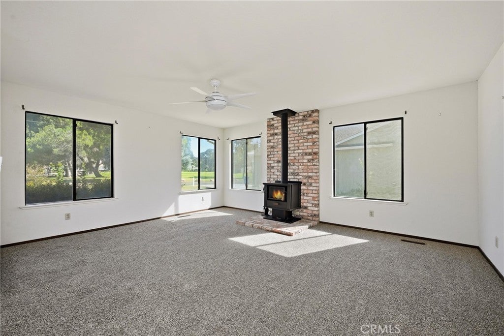 BRAND NEW ROOF on this Affordable Golf Course Living with Stunning Views in Each Direction! Looking for a home you can personalize without breaking the bank? This spacious 3-bedroom, 2-bath home is move-in ready with tons of potential for cosmetic updates to quickly build sweat equity. Perfectly positioned with no homes across the street—just open views of the 16th green—and backing to the 17th tee boxes and fairway, you'll enjoy sweeping golf course vistas from front to back. The home sits on a big, level, and usable front yard, ideal for gardening, play, or simple curb appeal upgrades. In the back, you'll find a private, fenced yard shaded by large, mature trees—perfect for relaxing or entertaining in peace. Step inside to an oversized living room filled with natural light, brand-new carpet, and a cozy woodstove on a raised brick hearth. The kitchen is generously sized, featuring a breakfast bar, ample counter space, and a huge dining room plus built-in cabinetry in the sunny bay window —all with incredible views. Three large bedrooms offer plenty of space, and the hall bathroom has been freshly updated with a new vanity, toilet, and flooring. The primary suite includes a large storage closet, extra long vanity & a specialty walk-in tub/shower combo for added convenience. Additional highlights include an indoor laundry room and a large garage with built-in storage shelving. And now with a brand new 30 year roof & new gutters just installed, all that is left is to make this home your own! Affordable, spacious, and ideally located—this is your chance to enjoy the golf course lifestyle without stretching your budget!