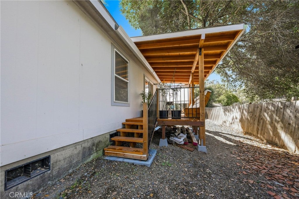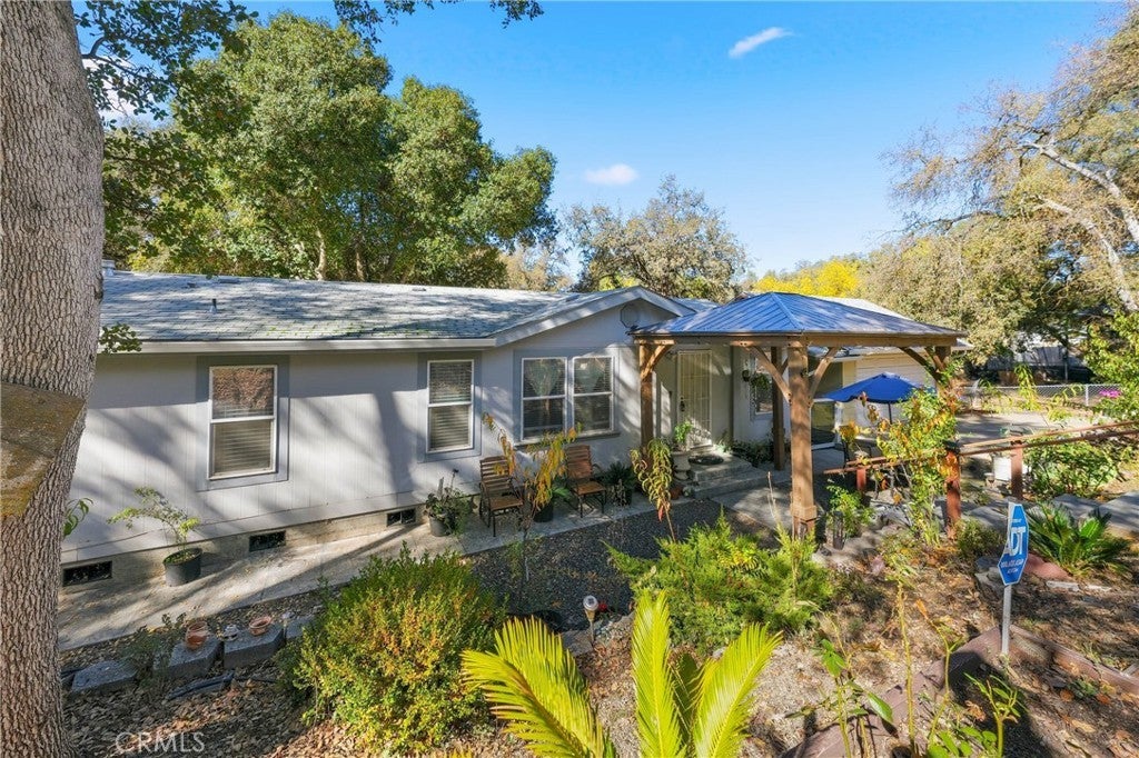 Discover this charming 3-bedroom, 2-bathroom home nestled in the welcoming Clearlake community. With 1,350 square feet of thoughtfully designed living space, this property features an open floor plan that creates a seamless flow between living areas, perfect for both daily life and entertaining guests. The home boasts practical amenities, including an indoor laundry room and spacious closets that offer ample storage. The primary bedroom provides a luxurious retreat with a soaking tub in the ensuite bathroom, creating your own personal spa experience. Access the back deck to enjoy an ideal space for morning coffee or evening relaxation, while the front gazebo covering adds character and provides a shaded outdoor space. Parking convenience comes courtesy of the detached two-car garage, which offers secure vehicle storage and additional space for hobbies or other storage needs. The landscaped front yard creates attractive curb appeal and requires minimal maintenance. Built on a solid concrete perimeter foundation with a 433A certificate, this home offers both structural integrity and peace of mind. The Clearlake neighborhood provides easy access to essential services and recreational opportunities. Residents will appreciate the proximity to Clearlake Schools and educational facilities. Daily errands are made easier with the nearby Foods Etc grocery store, while Redbud Park offers outdoor recreation and green space for relaxation. Public transportation options, including the bus station, enhance connectivity to the broader area. This well-maintained home combines comfort, functionality, and a convenient location, making it an excellent opportunity for buyers seeking quality living in a friendly community.