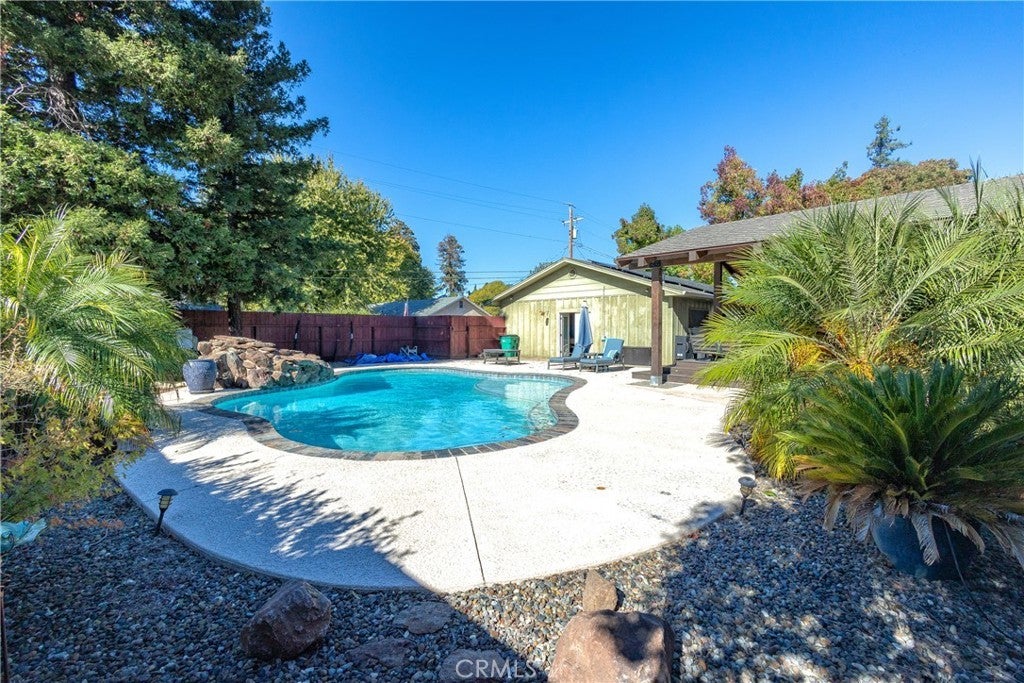 This home is in an established quiet cul-de-sac in the heart of Willows. Step into this 3-bedroom 2-bath home and cozy up to your fireplace or wood stove. Enjoy your covered deck overlooking your private pool. Grow your own veggies, flowers & herbs in your fully fenced garden. Tinker around in your oversized 3 car garage with two automatic rollup doors with alley access & ample storage. The garage even has a 1/4 bath & sink. The fully fenced back yard has a beautiful pool with a waterfall and lots of custom colored and stamped concrete, perfect for BBQ's and entertaining. The covered deck provides shade from the hot summer sun and a dry retreat in the rainy weather with built in lighting & ceiling fan. Property includes owned solar, two mini splits, central heating & air, automatic sprinklers in the front & back. Master bedroom has both private entry from the front & direct back patio access. Full laundry room located in the house. Bonus room between the family room and the two smaller bedrooms would make a great home office space with windows over-looking the pool. This home has so much to offer! Contact your favorite Realtor to book a showing today! Buyer to verify all information to their satisfaction.