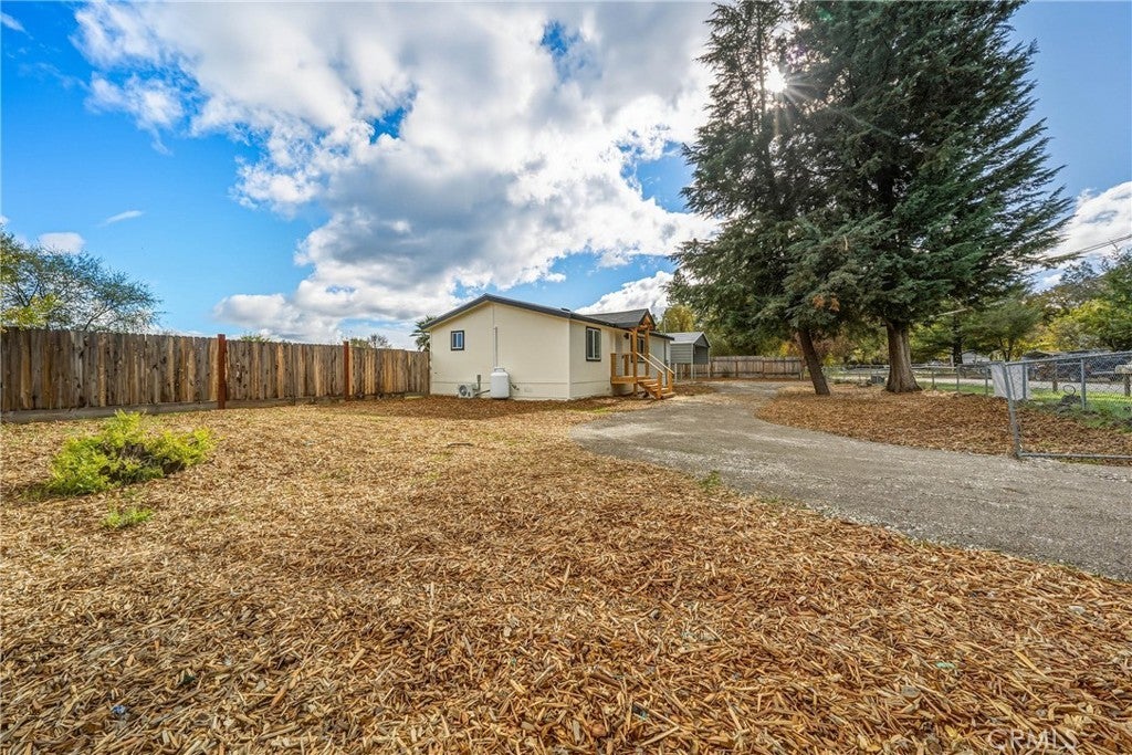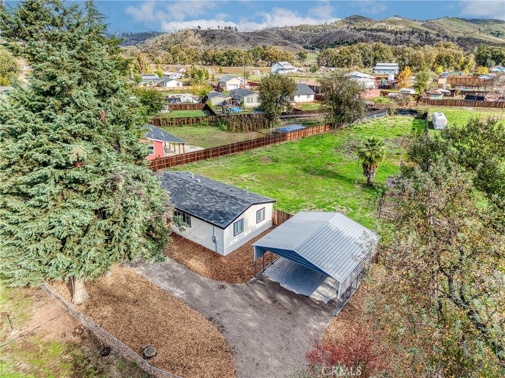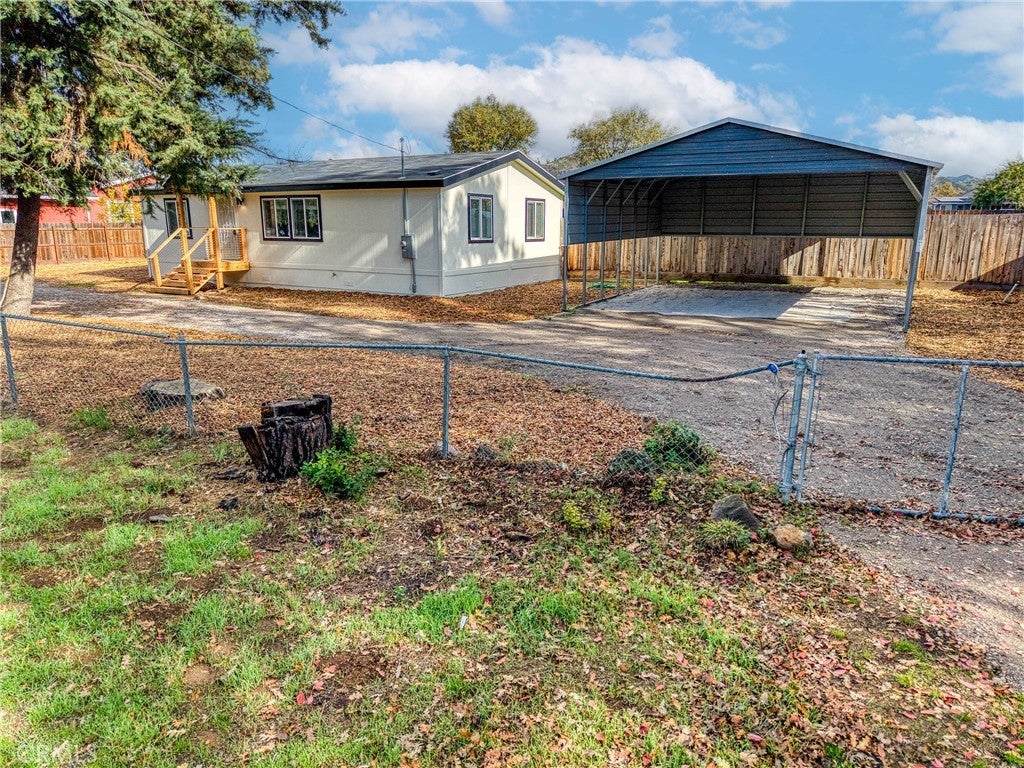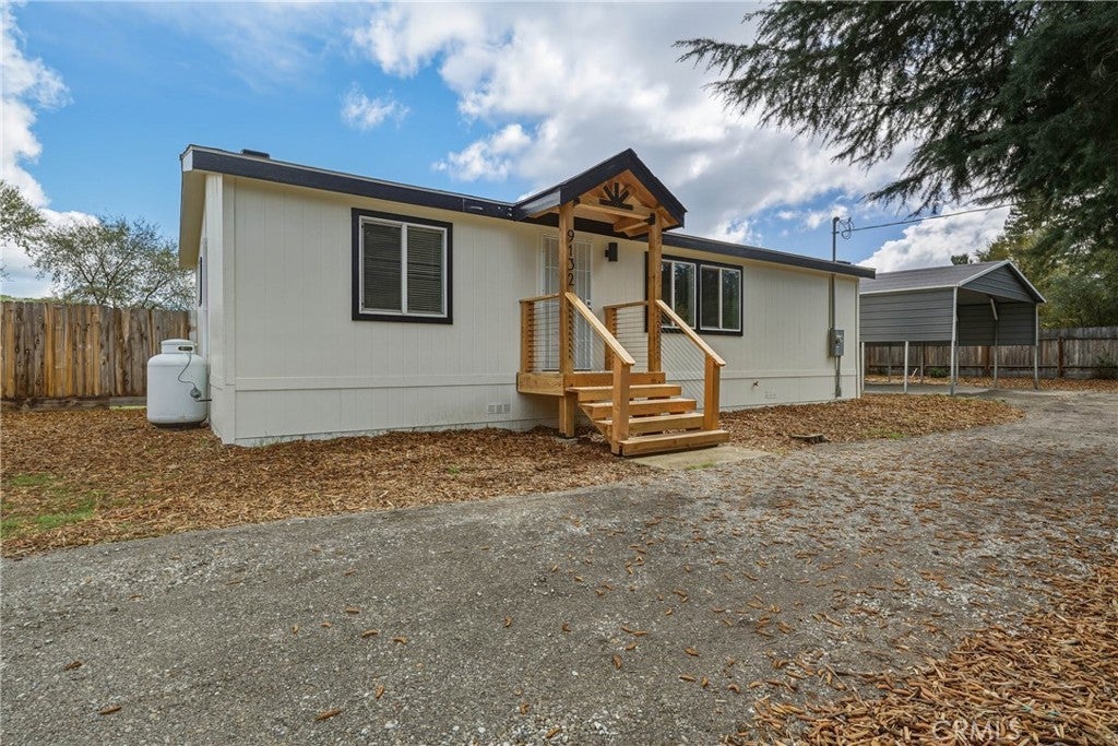 Discover this charming 3-bedroom, 2-bathroom mobile home offering 1,057 square feet of comfortable living space in the peaceful community of Lower Lake. This well-maintained property features an open-concept floor plan that maximizes every square foot, creating a seamless flow between living areas that is perfect for both daily life and entertaining. The home boasts numerous recent updates, including fresh interior and exterior paint, stylish vinyl plank flooring throughout, and energy-efficient dual-pane windows. The kitchen comes equipped with a gas stove, while a new mini split system ensures year-round comfort. The convenience of an indoor laundry room adds to the home's practical appeal. Outside, you'll find a fully fenced, large yard that provides privacy and security, complemented by mature trees that offer natural shade on warm summer days. The property features a spacious carport large enough to accommodate recreational vehicles, plus a convenient half-circle driveway for easy access. The generous lot size provides ample opportunity for expansion, including potential for an accessory dwelling unit. Located on a substantial parcel with dual street access through both Quarterhorse Lane and Riverview, this property offers flexibility and room to grow. The quiet neighborhood setting ensures peaceful living while remaining conveniently close to local amenities. Lower Lake High School sits nearby, and Lower Lake Park provides recreational opportunities just over a mile away. Public transit access keeps you connected to the broader region. This property represents an excellent opportunity for those seeking space, privacy, and potential in a tranquil Lower Lake setting.