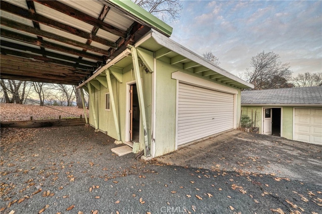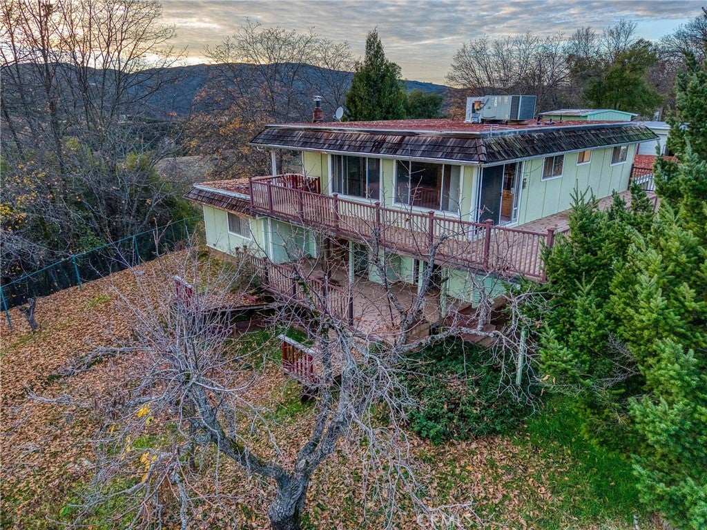 Expansive house on 20 acres in North Lakeport, offering potential for multiple units within the home and a true car enthusiast’s dream with extensive garages, shops, and workspace. Set behind a private paved driveway, this property feels secluded and peaceful while remaining conveniently close to town. The 3,851 square foot two story home is already configured for a possible two unit layout with separate entrances. The lower level features a full kitchen, two bedrooms, two bathrooms and a laundry room. Upstairs also offers a fully independent living area complete with a full kitchen, living room with a wood stove, one bedroom, and an additional room that could be converted into an additional bedroom or an office, and its own private exterior entry making it ideal for a separate unit. There's approximately 1.5 acres surrounding the home, including a fenced backyard, while the remaining approximate 18.5 acres below provide open, usable land suitable for a variety of uses. The property includes numerous carports and outbuildings, including five garages, one of which is a massive RV garage, two vehicle hoists including one interior and one exterior, plus a built in floor car lift. The home does need updating, offering an excellent opportunity to add value and customize. The property is serviced by a well and septic and includes an easement running through the land for neighboring properties, while maintaining a private driveway to the home and a strong sense of seclusion. A rare opportunity to own a large acreage property with income potential, exceptional shop space, and privacy in North Lakeport. Some of the photos have been digitally modified using virtual staging AI.