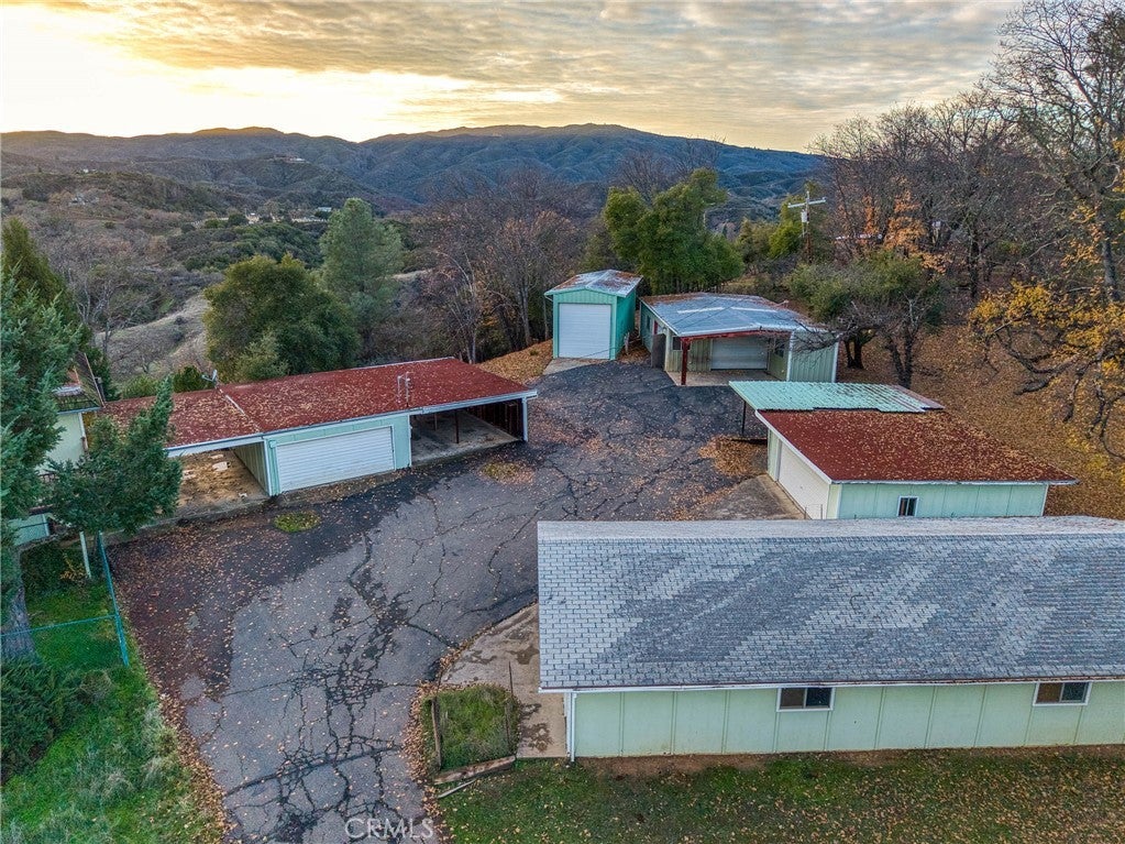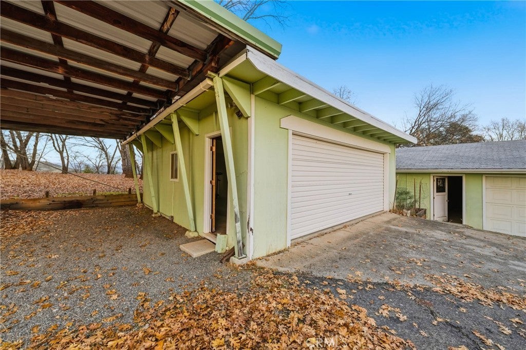 Expansive house on 20 acres in North Lakeport, offering potential for multiple units within the home and a true car enthusiast’s dream with extensive garages, shops, and workspace. Set behind a private paved driveway, this property feels secluded and peaceful while remaining conveniently close to town. The 3,851 square foot two story home is already configured for a possible two unit layout with separate entrances. The lower level features a full kitchen, two bedrooms, two bathrooms and a laundry room. Upstairs also offers a fully independent living area complete with a full kitchen, living room with a wood stove, one bedroom, and an additional room that could be converted into an additional bedroom or an office, and its own private exterior entry making it ideal for a separate unit. There's approximately 1.5 acres surrounding the home, including a fenced backyard, while the remaining approximate 18.5 acres below provide open, usable land suitable for a variety of uses. The property includes numerous carports and outbuildings, including five garages, one of which is a massive RV garage, two vehicle hoists including one interior and one exterior, plus a built in floor car lift. The home does need updating, offering an excellent opportunity to add value and customize. The property is serviced by a well and septic and includes an easement running through the land for neighboring properties, while maintaining a private driveway to the home and a strong sense of seclusion. A rare opportunity to own a large acreage property with income potential, exceptional shop space, and privacy in North Lakeport. Some of the photos have been digitally modified using virtual staging AI.