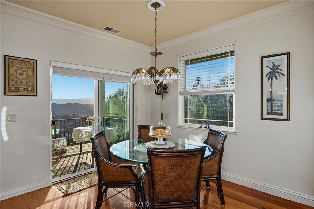 Discover UNOBSTRUCTED Lake & Valley views at this Gorgeous Hidden Valley Lake Estate! 3 Primary Bedrooms / 3.5 Baths with 2,927 SqFt + Newly added 323 SqFt BONUS Area with private entrance including a Bedroom, Bathroom & Kitchenette ~ a great guest quarters or private office! Open the front door to find Brazilian cherry hardwood floors throughout the living room, formal dining room, kitchen & stairs that lead to second level. Crown molding throughout. Enjoy picturesque Lake & Valley views from EVERY ROOM in this home! Kitchen has Thermador stainless steel appliances, including dishwasher, built-in refrigerator, built-in oven, microwave & warming drawer. Granite counters with oversized center island & gas cooktop to entertain + dining nook with slider to private deck. Separate laundry room off kitchen & half bath off entry. Primary suite on main floor with separate door for privacy. Primary bath has dual sinks, jetted tub & oversized walk-in shower. Downstairs is a family room with fireplace and built-in cabinet with a wine refrigerator + slider to deck. Both bedrooms have full private bathrooms & deck access with incredible views. Spacious 3 car garage with plenty of parking. Nice area under the home offers additional storage space/workshop. Newly added wine cellar + storage room. Zoned A/C on each floor. Resurfaced decks & exterior paint within the last 5 years. Beautiful landscaping and fencing in the front of the home for added curb appeal. OWNED SOLAR + POWER WALL for energy efficiency! This spare no expense home is one not to be missed!