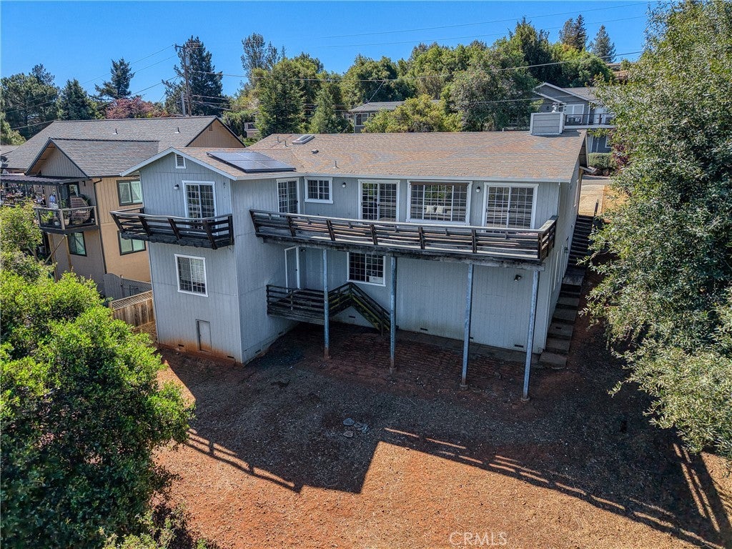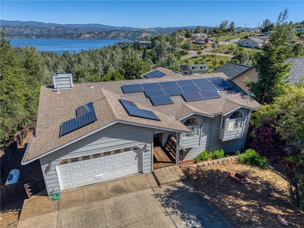 Fabulous lake views await in this spacious and versatile home designed for comfortable living and effortless entertaining. A large deck perfectly positioned to capture stunning lake vistas sets the tone, while the open, flowing floor plan and expansive windows bring in natural light and showcase the scenery throughout. A total of 5 bedrooms and 3 baths placed as follows: The main level features 3 bedrooms and 2 baths, including a serene primary suite with its own private deck. Vaulted ceilings and a charming brick fireplace highlight the living room, creating a warm and inviting atmosphere. The spacious kitchen opens seamlessly to the living area, making it ideal for gatherings. Downstairs offers incredible flexibility with a roomy family room, a second kitchen, 2 additional bedrooms, and a full bath. With its own separate exterior entrance and a private deck, this level is perfect for a potential in-law unit, guest quarters, or extended living space. Additional highlights include a large 2-car garage with direct access to the main level, a fenced backyard, easy parking, owned solar panels, and abundant storage throughout. An adjacent lakeview parcel is also included, providing added privacy and future possibilities. This is a rare opportunity to enjoy breathtaking views, flexible living spaces, and exceptional value all in one property.