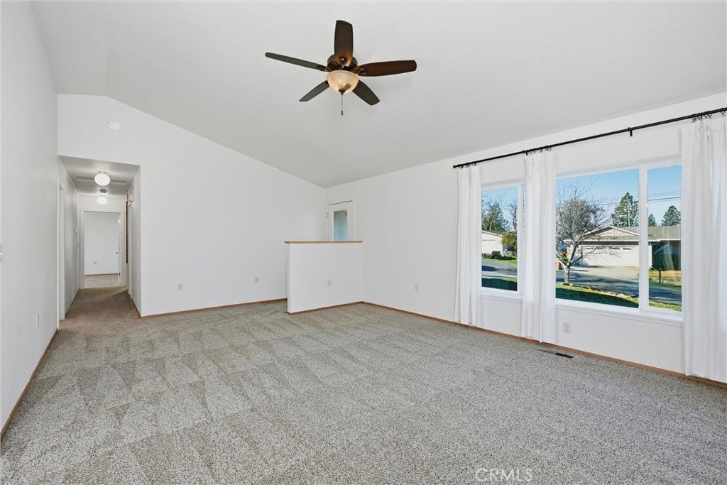 • Interior FeaturesBreakfast Bar, Ceiling Fan(s), Cathedral Ceiling(s), Eat-in Kitchen, Open Floorplan, Bedroom on Main Level, Main Level Primary, Breakfast Area, Living Room Deck Attached