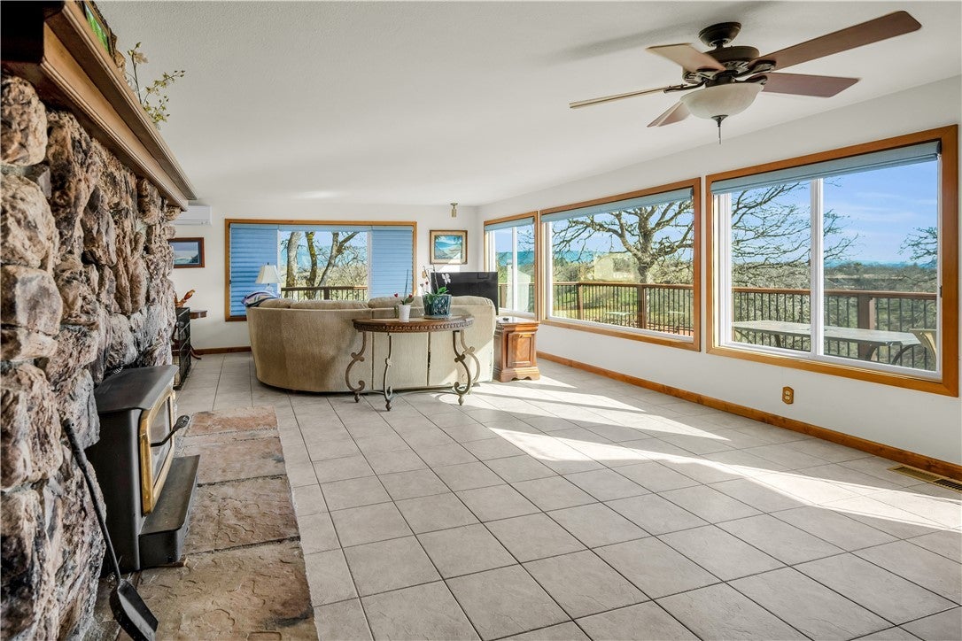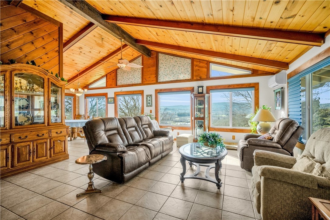 Perched high above the Lakeport Valley, this one-of-a-kind Northern California retreat captures sweeping, unobstructed views of Clear Lake and the surrounding countryside. Set on 18 private acres, the property blends timeless architecture, thoughtful upgrades, and serene outdoor living where wide-open skies and peaceful surroundings set the tone. The home welcomes you with a beautifully hardscaped courtyard-style patio, leading into a warm and inviting interior defined by vaulted wood-plank ceilings, exposed beams, and rich natural finishes throughout. A striking atrium-style interior planter with stone accents serves as a stunning architectural focal point, filling the home with natural light and a seamless connection to the outdoors. The residence has been fully updated and offers a versatile floor plan with a downstairs bedroom and bath, plus three additional bedrooms and two bathrooms upstairs. A radiant-heated main floor provides a cozy living space and is enhanced by wood stoves, while the upstairs primary suite features a wood-burning fireplace, creating a peaceful sanctuary with views stretching across the valley and lake. Step outside onto the Trex wrap-around decking or unwind on the hot tub deck overlooking Clear Lake, offering a true front-row seat to unforgettable sunsets and star-filled nights. Notable upgrades include a new roof, owned solar, and a private well, delivering comfort, efficiency, and peace of mind. The property is complete with a large attached two-car garage, shop/barn, multiple outdoor patio areas, and established garden beds, offering space to live, create, and explore. This is more than a home it's a lifestyle of privacy, craftsmanship, and connection to nature, with some of the most breathtaking views Lake County has to offer.
