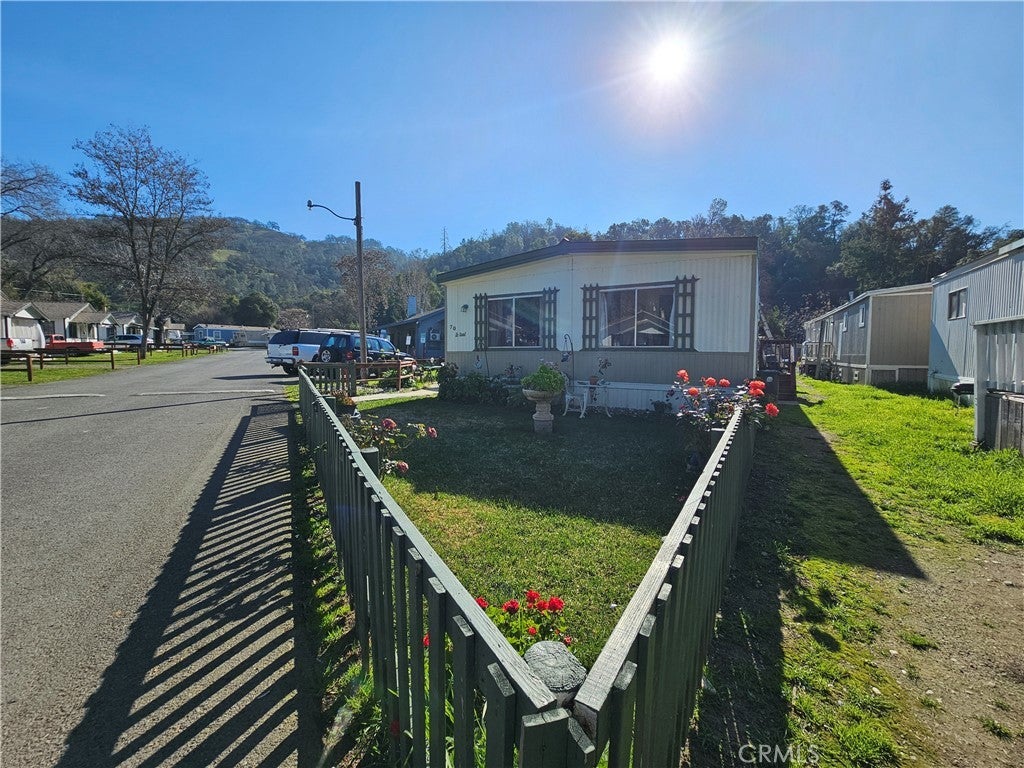 Welcome to 3630 Country Club Dr #70 in Lucerne, located in the desirable Lucerne Country Club Mobile Home Park, just minutes from beautiful Clear Lake. This well-maintained manufactured home offers a comfortable and functional layout featuring a primary bedroom suite plus an additional guest bedroom and full bath, perfect for guests or flexible living. The home boasts a spacious living room large enough to easily accommodate a home office or hobby area, along with a dedicated dining space with built-in cabinetry for extra storage and display. The large galley-style kitchen offers ample counter space, abundant cabinetry, and tons of storage, making meal prep a breeze. An indoor laundry area adds everyday convenience. Outside, enjoy a huge lot with ample parking, a storage shed, established landscaping, and a fully fenced yard—ideal for pets, gardening, or outdoor entertaining. Relax on the covered front porch, and appreciate the added accessibility of a handicap ramp for easy entry. Conveniently located close to shopping, schools, and services, and just minutes from Clear Lake, where you can enjoy boating, fishing, kayaking, and water sports. Lake County is also home to award-winning wineries, scenic hiking and biking trails, charming small towns, and endless outdoor recreation. A wonderful opportunity for comfortable living in a peaceful community with all that Lake County has to offer!