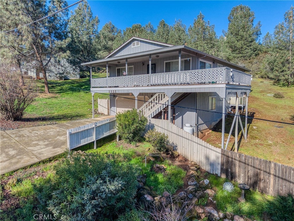 Beautifully updated home with stunning lake and mountain views in desirable Kelseyville Riviera. This 3 bedroom, 2 bathroom home offers 1,496 square feet of living space on a generous 16,988 square foot lot, approximately 0.39 acres. The property features a relatively level driveway leading to a spacious two car garage with an additional bonus room ideal for a workshop, hobby space, or extra storage. Stairs lead to the main living area, where a large half wraparound deck spans the front and side of the home, perfectly positioned to capture sweeping lake views. Enjoy your morning coffee overlooking the water from the deck, the kitchen window, or the primary bedroom, which also features beautiful lake views. All three bedrooms are generously sized and feature mirrored closets. The living room features a cozy wood stove, complemented by central heating and air for year round comfort. The roof and exterior paint were updated approximately four to five years ago, providing added peace of mind. The kitchen has updated appliances and opens to the living room, with lake views visible from the kitchen window. Included in this sale are the dishwasher, washer and dryer, a leather couch, dining set, TV table, draperies, and the carpet, which is approximately five years old. All of these items are lightly used, as the property has been primarily a vacation home. The refrigerator and two new beds could also be included in this purchase. A security system and propane tank are included as well. Located just off Soda Bay Road near Soda Bay and minutes from the Riviera market, gas station, and local restaurants, this home offers convenient access to shopping and dining. Close proximity to the lake, boat launch, and waterfront dining makes this an ideal full time residence, weekend retreat, or vacation property for those who love lake living and boating. Some of the photos have been digitally modified and two of the bedroom photos use virtual staging AI.