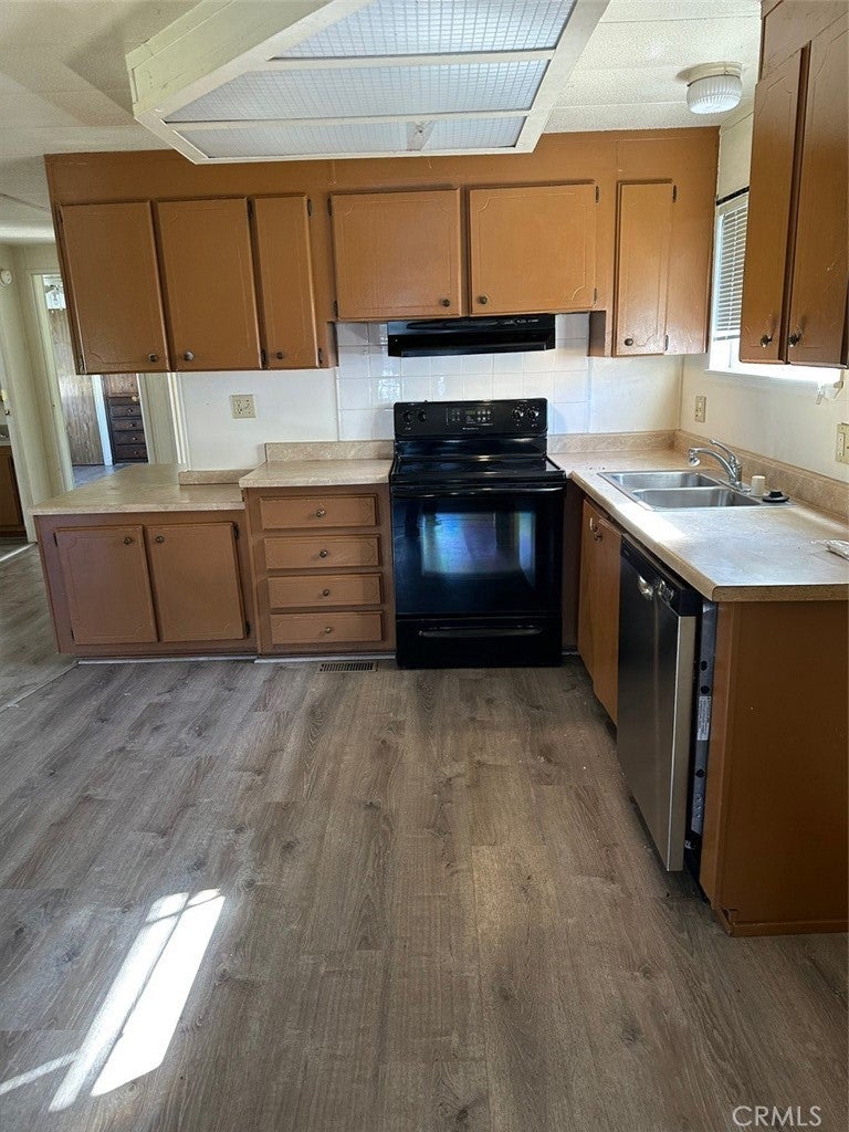 Home was used as a rental for many years. Now it's time to sell! 2 BD-2 BA manufactured home. Laminate flooring throughout. Kitchen has a small eating area, brand new dishwasher and garbage disposal. Walk in shower in Primary bath. Primary bedroom has built-in drawers. Main hallway bath has shoer over tub. There's a separate laundry room too. Dining area has a built-in hutch and built-in shelving in living room. 2 car carport, fenced yard and storage shed in back.