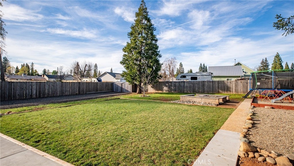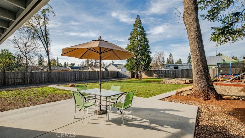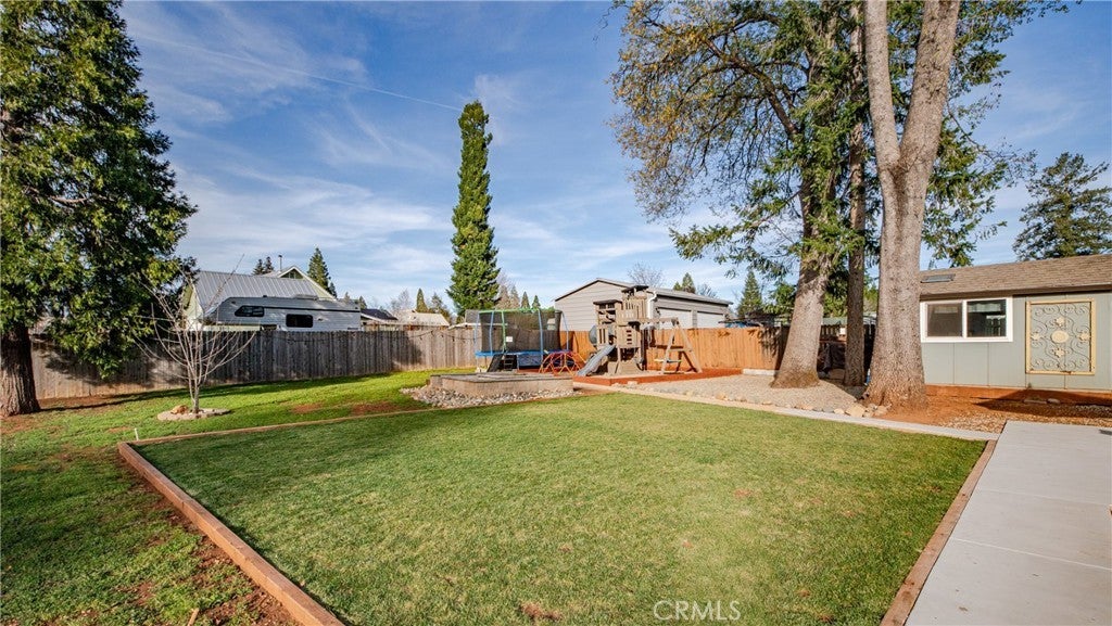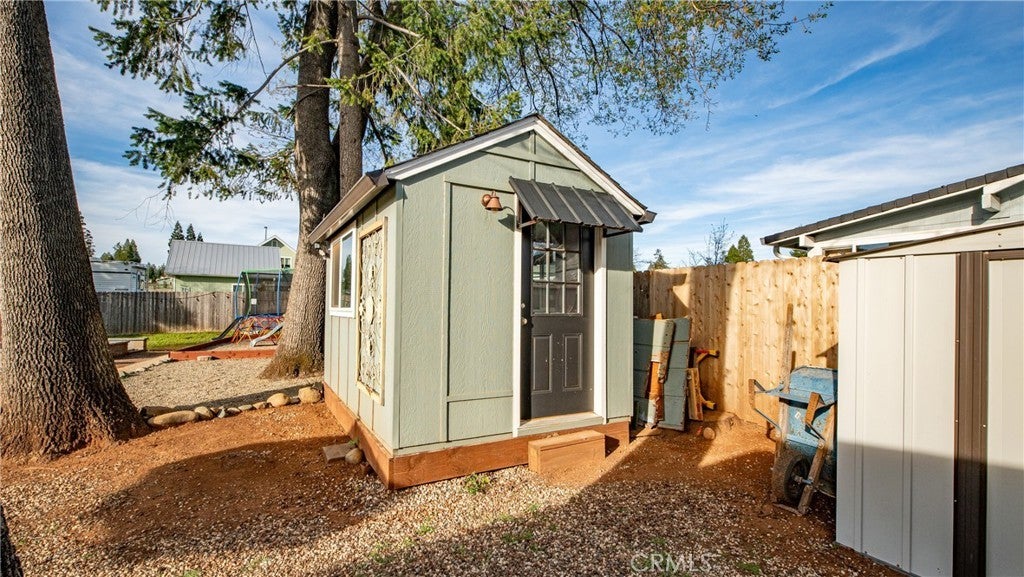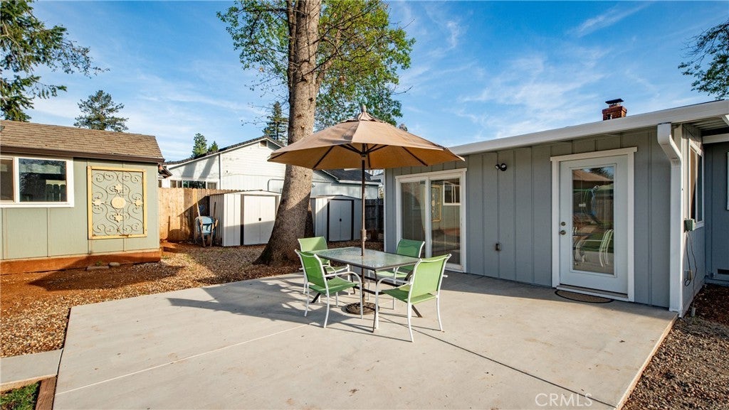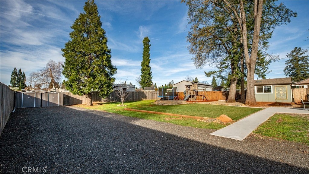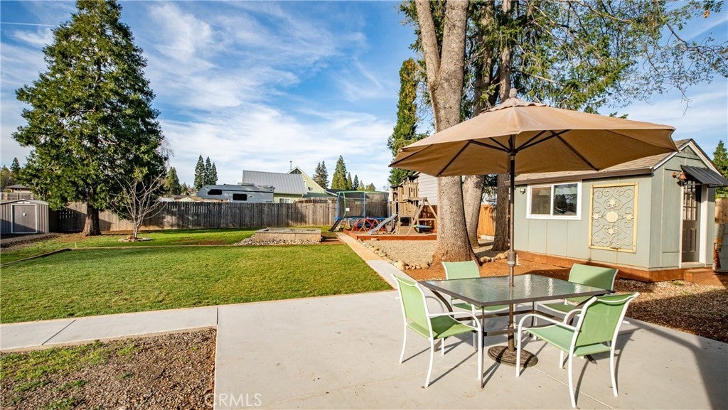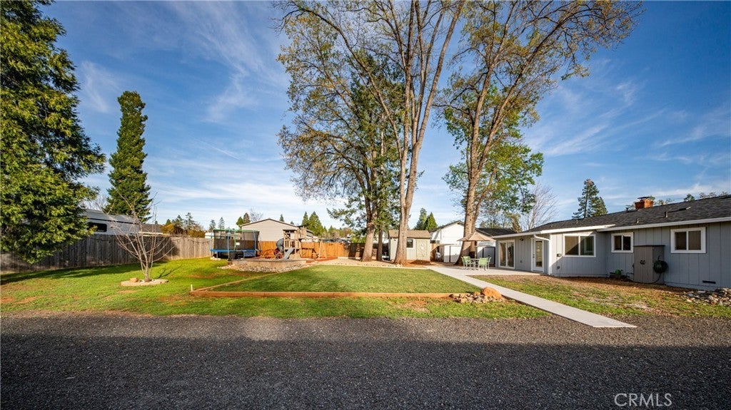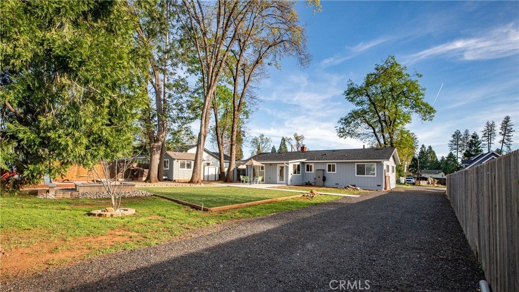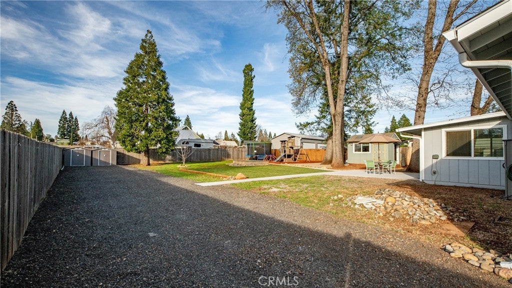 Welcome to 1465 Happy Woods Ln in Paradise, a well-maintained 3 bedroom, 2 bathroom home located on a quiet dead-end street. This property offers a comfortable layout, recent updates, and plenty of space both inside and out. Recent improvements include new exterior paint, a newer roof, and a newer furnace, providing both curb appeal and peace of mind. The spacious living room features a cozy wood stove and flows into the dining area and kitchen, creating a functional space for everyday living and gatherings. The primary bedroom includes a walk-in closet and its own bathroom, while two additional bedrooms provide flexible space for guests, a home office, or hobbies. Outside, the landscaped backyard creates an inviting setting for relaxing, gardening, or entertaining. A detached studio shed offers additional versatile space that can be used as a hobby room, art studio, workspace, or extra storage. The property also features large RV and trailer parking, offering plenty of room for recreational vehicles, boats, or equipment. Situated on an approximately 0.39 acre lot, this property provides space to enjoy the outdoors while still being conveniently located near local amenities. With thoughtful updates, flexible living spaces, and a peaceful location, this property offers a great opportunity to enjoy comfortable living in Paradise.