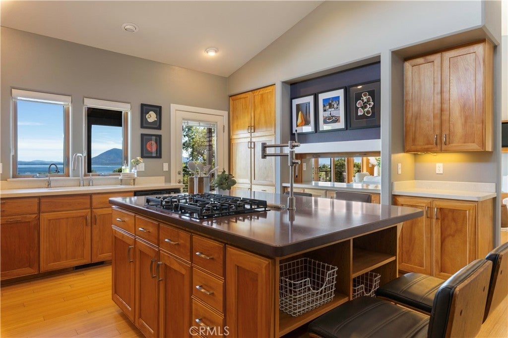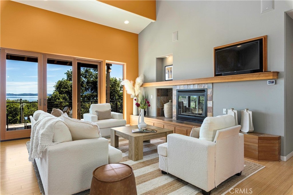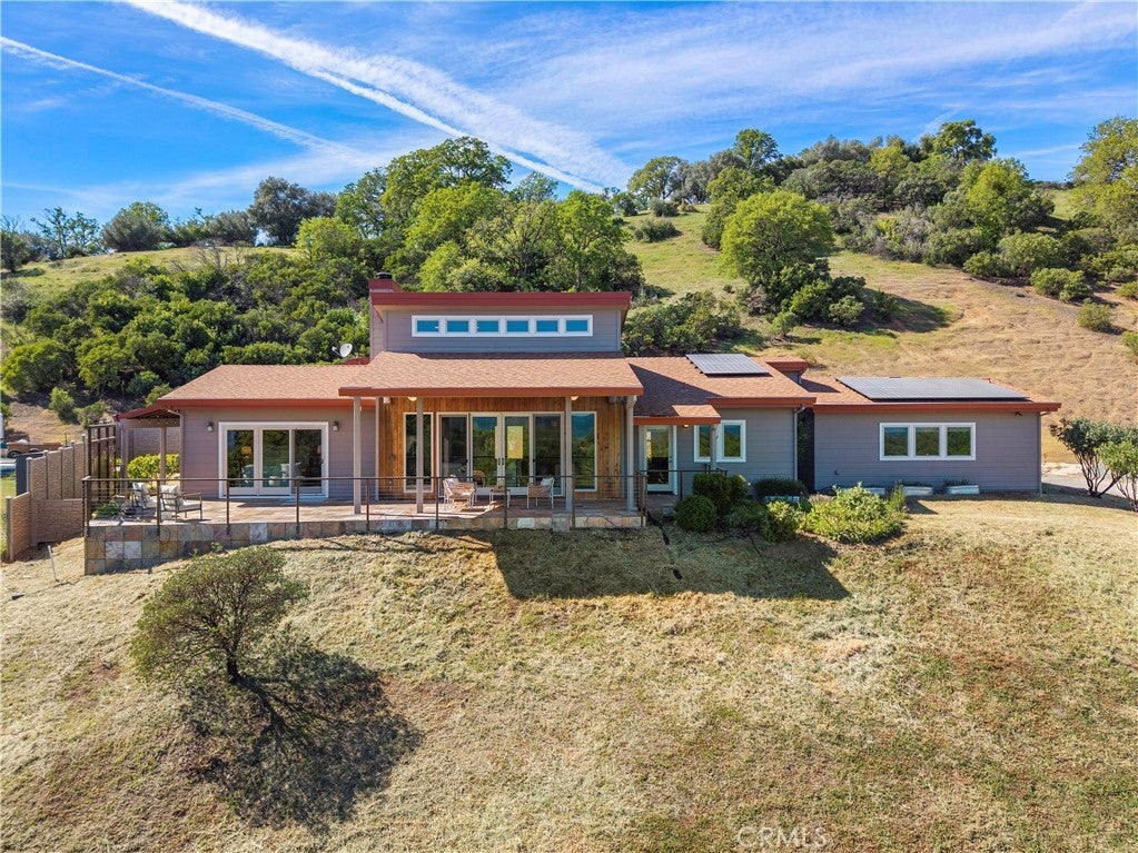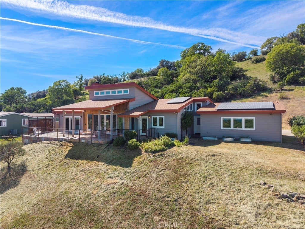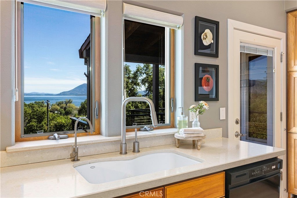 Panoramic Lake Views + Single-Level Living + Solar + Tesla Backup + Lake Access Unobstructed panoramic lake views steal the show in this architect-designed single-level home, where soaring ceilings and expansive Milgard sliding glass doors create a bright, open living space that brings the water into everyday living—visible from nearly every room, including the garage. Owned solar with additional photovoltaic panels and two Tesla backup batteries provide exceptional energy efficiency and impressively low annual electric costs. The interior is finished with custom kitchen cabinetry, quartz countertops, wrought iron detailing, slate decking, and designer dimmable lighting that adds warmth throughout. The well-designed floor plan offers a spacious primary suite positioned for beautiful sunrise views over the lake, complete with a seating area, direct access to the side yard and hot tub pad, a walk-in closet, and an oversized floor-to-ceiling tiled shower. Two guest bedrooms and a full bath are located down the hall. Near the garage entrance, a half bath, laundry closet, and a bonus storage room adjacent to the two-car attached garage with lake views. A covered slate deck extends the living space outdoors, with access from the kitchen, living room, and primary suite—ideal for relaxing or entertaining while taking in the view. The side yard, accessed from the primary suite, is privacy fenced with a lifetime warranty. The grounds offer raised garden beds with irrigation, a greenhouse, a new storage shed, and thoughtfully designed front landscaping with blooming shrubs throughout the year, automatic sprinklers, and a subtle water feature that adds a sense of calm on arrival. Conveniently located near the hospital and essential amenities. Lake access through a voluntary membership to a private lakefront beach area with picnic tables and restrooms, available exclusively to members. (For only $60/year). A rare opportunity to own a single-level home that combines expansive lake views, efficiency, and comfort in a truly special setting