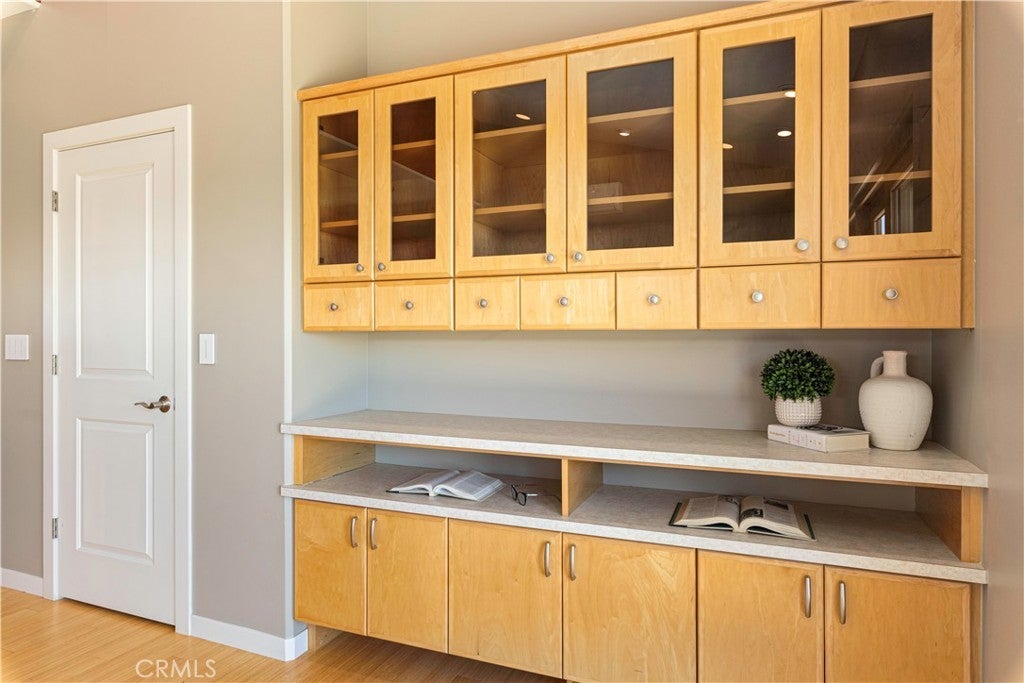 • Interior FeaturesBreakfast Bar, Built-in Features, Ceiling Fan(s), Eat-in Kitchen, High Ceilings, Living Room Deck Attached, Open Floorplan, Pantry, Quartz Counters, Recessed Lighting, Wired for Sound, Entrance Foyer, Walk-In Pantry, Walk-In Closet(s)