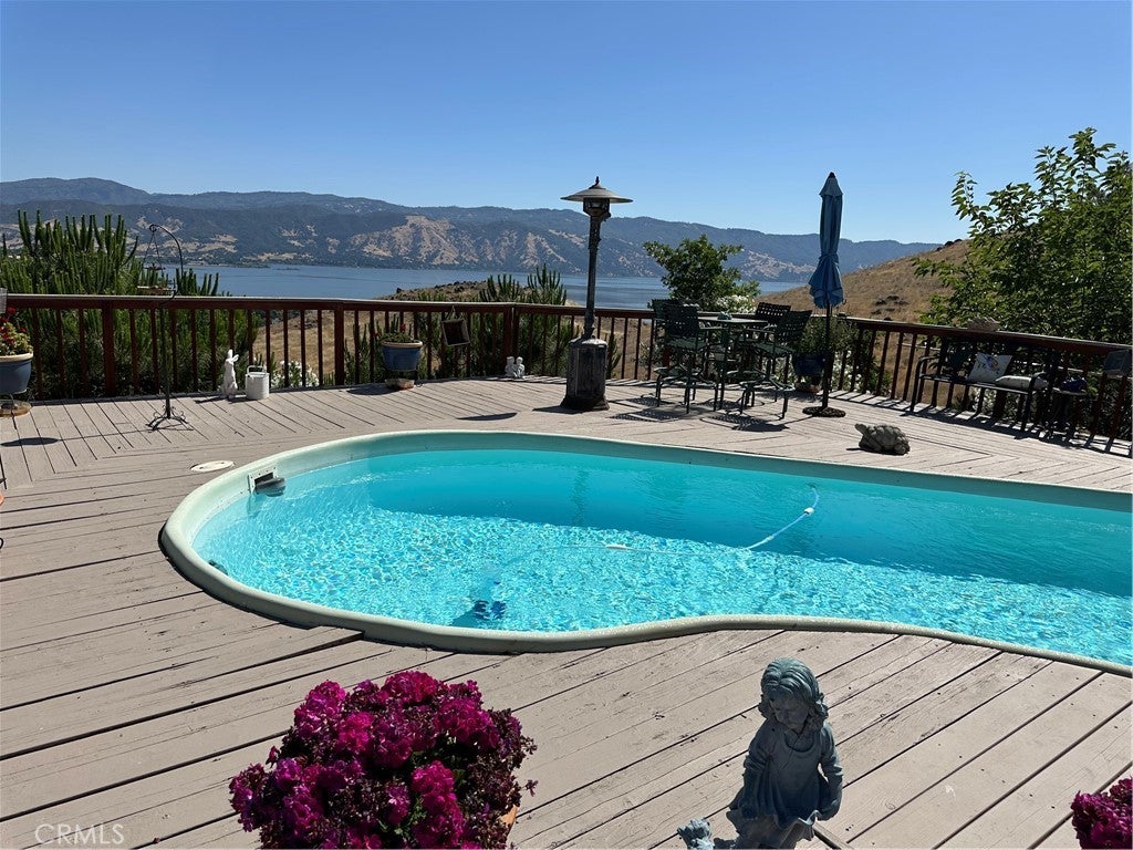 Step inside through a stunning entryway that sets the tone for the rest of the home. Thoughtfully designed with comfort and functionality in mind, the interior boasts quality craftmanship and plenty of natural light. Almost all rooms, including entryway, have slider doors to the expansive back decking and sparkling swimming pool with beautiful views of the lake, mountains and rolling hills creating indoor-outdoor living. This property features two 2-car garages, with workshop areas, - one attached, and another conveniently located next to it. Both offer easy access to the expansive back patio, deck and sparkling swimming pool, perfect for entertaining. Wake up in the master bedroom with walls of windows, offering breathtaking panoramic views. This 1+ acre property also features a paved circular driveway with a carport for easy access to the front door. A new heating and air-conditioning unit installed in 2025. Conveniently located, rural yet close to public docks, parks, boat launches, shopping, hospital and restaurants.
