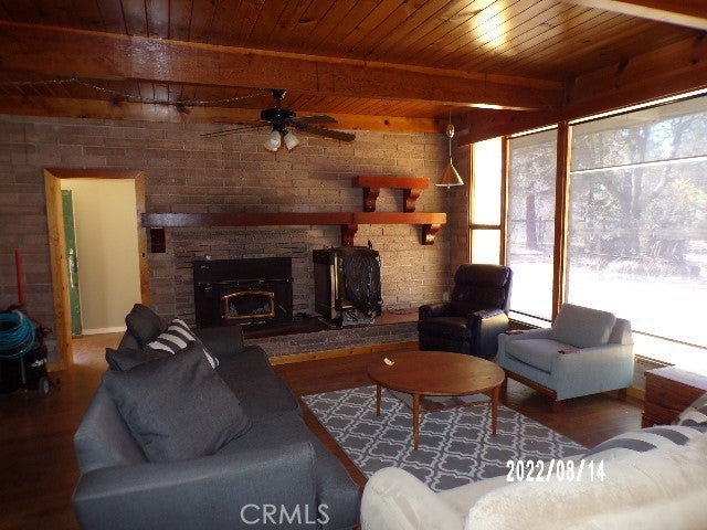 Back on the market. Almost one acre of lakefront property with end of the road privacy. Living room has beam ceilings, large floor to ceiling brick fireplace with wood burning insert, wood flooring and floor to ceiling windows taking advantage of the view; step saver kitchen with dining area. Bedrooms have carpet with one having a sliding glass door to the lake side of the home. 80+/- feet on the lake