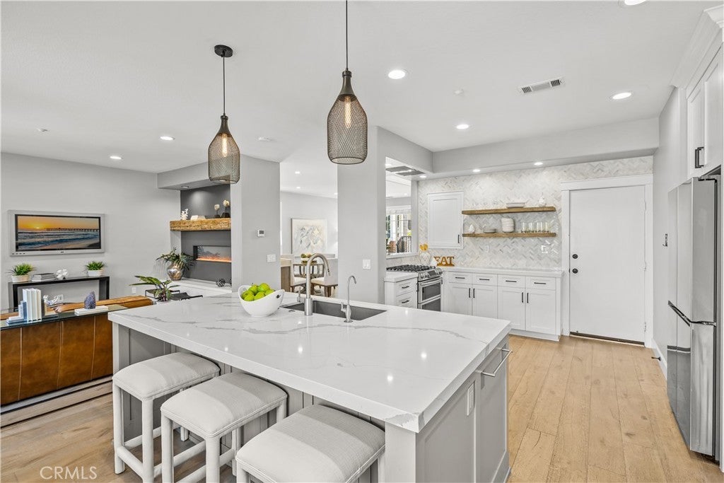 BACK ON THE MARKET!! Enjoy the best of Southern California lifestyle in this beautifully updated Forster Highlands home—just minutes from the sun-soaked shores of San Clemente and Dana Point. Whether it’s a morning surf, sunset stroll, or weekend at the harbor, this location puts you close to it all. Tucked into a peaceful, single-loaded cul-de-sac, this beautifully updated 5-bedroom residence offers a perfect blend of comfort, functionality, and Southern California charm. A cozy front porch invites you into the home, where thoughtful upgrades and warm, welcoming spaces await. The heart of the home is the expansive, remodeled kitchen featuring a stunning quartz island that flows seamlessly into the open-concept family room, complete with a contemporary linear fireplace—ideal for cozy evenings and effortless entertaining. Enjoy the added peace of mind and health benefits of a whole-house water filtration system and a dedicated reverse osmosis water system in the kitchen. Step outside to a private backyard oasis framed by tropical landscaping and serene hillside views. Enjoy the intimate gazebo perfect for unwinding or hosting gatherings under the stars. Upstairs, a spacious loft provides flexible living space, while the outdoor lanai offers a peaceful retreat to take in mountain and canyon views. The luxurious primary suite includes a soaking tub, separate shower, and a generous walk-in closet. Three additional upstairs bedrooms and an open loft space ensure space for everyone, while the main-level fifth bedroom is ideal as an in-law or nanny suite. Nestled in the desirable Forster Highlands community, this home is within walking distance to Truman Benedict Elementary and Bernice Ayer Middle School. Truman Benedict Elementary school recognized in the 2025 California Distinguished Schools Program. San Clemente High School and San Juan Hills High School are both conveniently located just a short drive away. You’ll also enjoy access to resort-style amenities including an Olympic-sized pool, relaxing spa, clubhouse, playground, picnic areas, and scenic hiking trails. Whether you're hosting family dinners or seeking tranquil moments surrounded by nature, this home offers the perfect balance of privacy, luxury, and community living. Owner will consider a lease option.