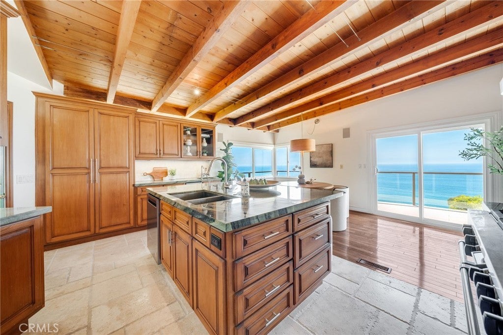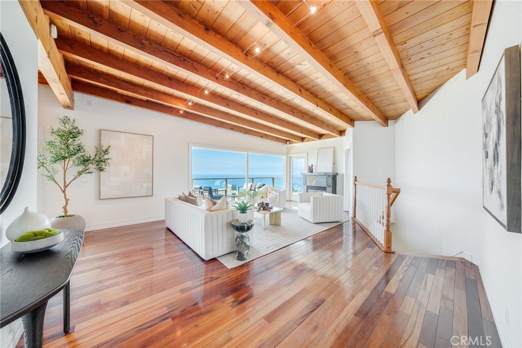 Set overlooking Laguna Beach on the serene and sought-after Coast Royale in Laguna Beach, 31272 Ceanothus Drive takes in panoramic views that stretch from the Montage Resort and Emerald Bay to the distant skyline of Long Beach. Catalina Island sits perfectly centered in the horizon, providing a daily front-row seat to the ever-changing, remarkable sunsets. A spacious deck off the main living area invites the sort of outdoor living we treasure in Southern California, providing a perfect setting to unwind and take in the tranquility. It’s an inspiring backdrop for calm mornings, creative thinking, or simply enjoying the moment. Inside, the home features soaring beamed ceilings in the living room and beautiful hardwood floors that add warmth and character throughout. The kitchen and living areas flow seamlessly to the outdoor spaces, creating an expansive, view-filled space to relax or entertain. The kitchen is a centerpiece for the home - outfitted to encourage your inner chef in an inspiring setting. The primary suite is privately situated and generously sized, with whitewater views that greet you each morning. Open the windows and let the rhythmic sound of crashing waves lull you to sleep. In addition to the main living areas, the home includes several versatile flex spaces to suit your lifestyle. One room features built-in shelving and a custom desk, making it ideal for a home office. Another space offers the perfect setting for a home gym or creative studio. An oversized laundry room adds extra function and convenience, with room for storage or expansion. The beach is just a short jaunt, and a favored 'locals' park and restaurants allow you to enjoy life without leaving your neighborhood. 31272 Ceanothus Drive a wonderful opportunity to enjoy elevated coastal living in a peaceful Laguna Beach neighborhood, just minutes from the best of Laguna Beach and southern California!