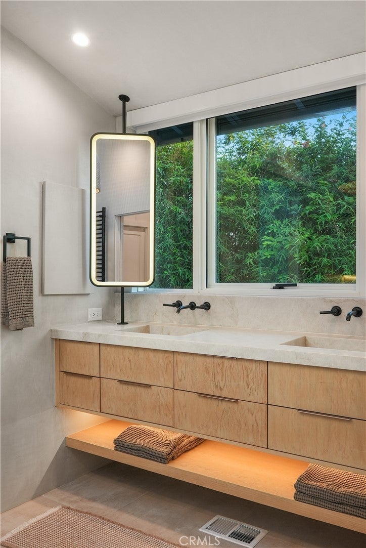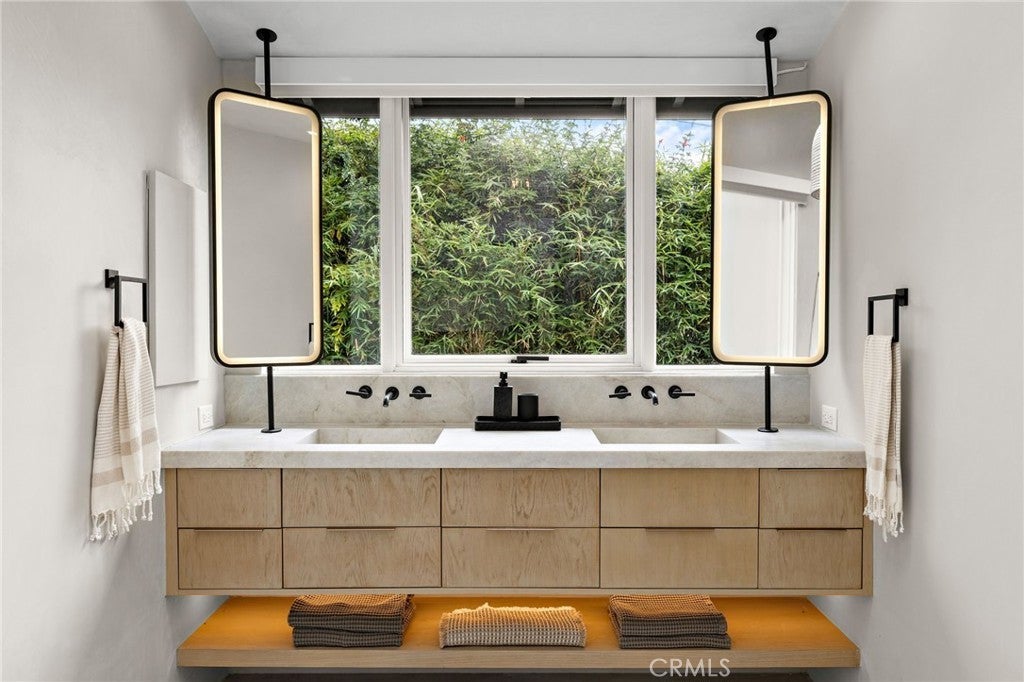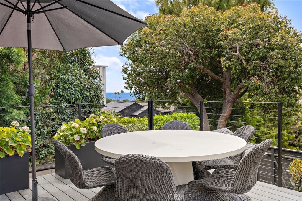 Stunningly Remodeled and Beautifully Furnished Coastal Retreat in the Heart of Laguna Beach. Experience the epitome of coastal living in this beautifully remodeled 1926 cottage, ideally situated in Laguna Beach’s coveted Woods Cove neighborhood—just moments from the ocean and the beloved Bluebird Canyon Park. This charming and historic home offers a serene escape, perfectly blending timeless character with luxurious modern updates. Set on a picturesque corner lot, this fully furnished residence features three spacious bedrooms, each with its own en suite bathroom, plus an additional half bath for guests—providing both comfort and privacy for all. The primary suite showcases a Tulum-inspired spa bathroom, and a luxurious soaking tub highlighted by a striking 10-foot skylight that fills the space with natural light and tranquil energy. Throughout the home, refined design details abound, including Carrera marble countertops, custom window treatments, high-end heated bedding, recessed lighting, automated blinds, ceiling fans, and vaulted ceilings adorned with skylights and transom windows. The inviting living room—centered around a contemporary fireplace—flows effortlessly into both front and rear outdoor living spaces, the indoor and outdoor dining areas, and a light-filled chef’s kitchen with an ocean view deck. The modern bathrooms feature Taj Mahal quartzite or marble counters, custom sinks, heated towel racks, all creating a harmonious indoor-outdoor flow that enhances the home’s peaceful ambiance. Outside, enjoy mature shade trees, lush landscaping, multiple covered porches, an ocean view deck, a built-in sun bench, a luxury ping-pong table, and multiple stylish dining areas with a built-in BBQ—perfect for entertaining or unwinding under the stars. Classic Dutch doors welcome guests into a bright and airy environment, defined by white-paneled walls, fresh coastal decor, and an undeniable sense of tranquility. This exceptional home is the perfect setting for a dream vacation—offering timeless charm, modern sophistication, and an ideal location to enjoy the very best of Laguna Beach.