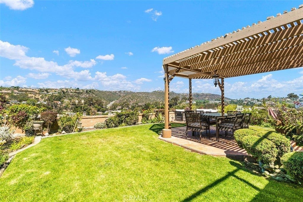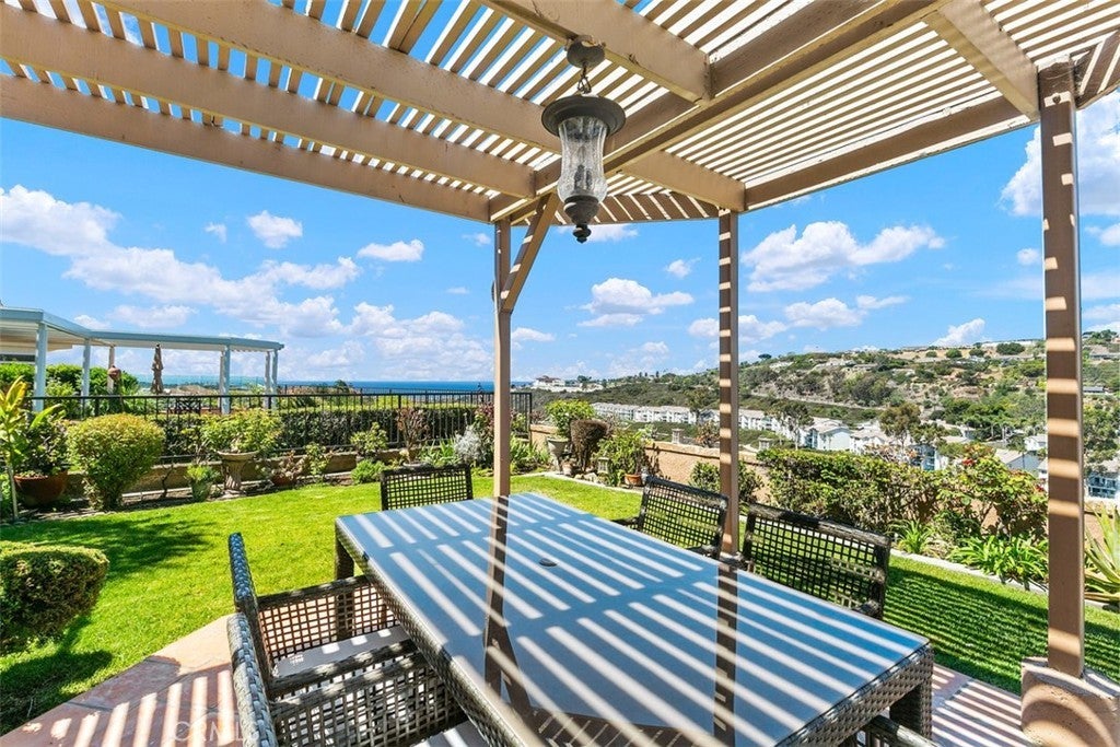 Beautiful fully furnished and equipped home for lease in 24-hour guard gated Ritz Pointe, Dana Point - Monarch Beach. This lovely home boasts panoramic ocean views overlooking the Monarch Links golf course, with stunning ocean, city lights, Saddleback mountains, and unforgettable sunset views. This remodeled and turnkey residence offers three bedrooms, three full bathrooms, and one-half bath. An open and inviting floor plan features a completely remodeled gourmet kitchen with a huge center island, granite countertops, stainless steel appliances, custom cabinets with soft-close drawers, and a large walk-in pantry. The primary suite is pristine, spacious, light, and bright, with a large retreat, which is perfect for a home office, den, or study. Enjoy absolutely spectacular ocean and golf course views from the generously sized balcony just off the primary bedroom, accessed via a French door. This home is wonderful for entertaining because of the open floor plan AND the large, well-maintained lushly landscaped yard. The backyard is so serene and calming. It gives one a sense of peace and tranquility. There is a gazebo and ample outdoor seating for dining al-fresco, beautiful flowering plants, a grassy lawn area, mature fruit trees, and a stunning unobstructed view seating area overlooking the golf course toward the ocean. You'll also enjoy a custom built-in BBQ center with ice storage, cabinets, and a stainless steel grill. This beautiful home is within walking distance of Salt Creek Beach by way of a neighborhood path that takes you directly to the beach through the community-accessible trail. This peaceful and meandering trail goes around the golf course and takes you under Coast Highway to the beach. Walk, bicycle, or jog to the nearby Waldorf Astoria Resort, The Ritz Carlton, Dana Point Harbor, and Strand Beach Park. Laguna Beach is minutes away and just a short drive to the famed Montage Resort and Spa. The year-round temperate beach climate offers soothing ocean breezes and perfect weather for all of your favorite outdoor activities. Enjoy all that South Orange County has to offer with its pristine and beautiful beaches, coastal trolley transportation, fabulous restaurants, and a lifestyle that feels like a vacation every day. This property is being offered for a 6-12 month lease, FURNISHED ONLY. It has two Cal King Beds, one Twin Bed, and three flat-screen wall-mounted TVs. NO PETS. Utilities are included with a monthly cap. NOT A SHORT-TERM LEASE.