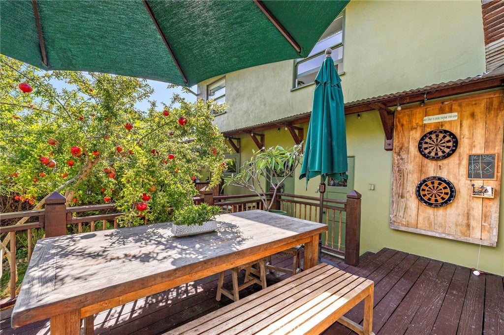 Available June, July, August, or September 2026 for a minimum stay of one month. This beautifully maintained four bedroom, three bath home is set in one of Laguna Beach’s most desirable residential neighborhoods, offering privacy, character, and an easy walk to beaches, shops, and restaurants. The property sits on an expansive, landscaped lot with mature trees, fruit trees, and a large grassy yard, a rare offering in this area. Multiple outdoor spaces include a spacious deck with dining and lounge seating, ideal for outdoor meals and everyday use. Inside, the home features open living spaces with exposed wood beams, vaulted ceilings, and abundant natural light. The kitchen is equipped with high end appliances, a large island, and quartzite countertops, opening directly to the dining and living areas. A fireplace anchors the main living room. One bedroom and two bathrooms are located on the main level, with three additional bedrooms upstairs. The primary suite offers a peek a boo ocean view and a peaceful outlook. Bedroom furnishings include one king bed, two queen beds, and one full bed. The home is fully furnished and well appointed, featuring a four person private sauna, ping pong table, cornhole, darts, and two paddle boards that also function as hybrid surfboards. Two reserved driveway parking spaces are included, and monthly professional house cleaning is provided around the middle of each month. This is a rare opportunity to enjoy a spacious, private Laguna Beach home in a prime location.
