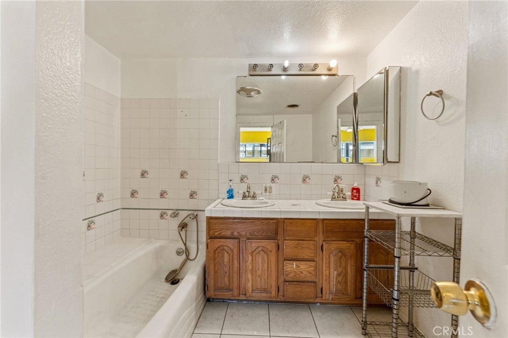 Very quiet neighborhood, large home suitable for larger families. Total of 5 bedrooms and 3.5 bathrooms. Almost 2,200 square feet of living space. There are 2 master bedrooms downstairs. Dual paned windows. Laminate flooring in all bedrooms and living room. Ceramic tile in kitchen and family room. Very Bright and Airy with central heating. Back yard with surrounding block walls & a gated pool plus a BBQ island. Property has solar. Property in great location close to schools, shopping, and freeways.