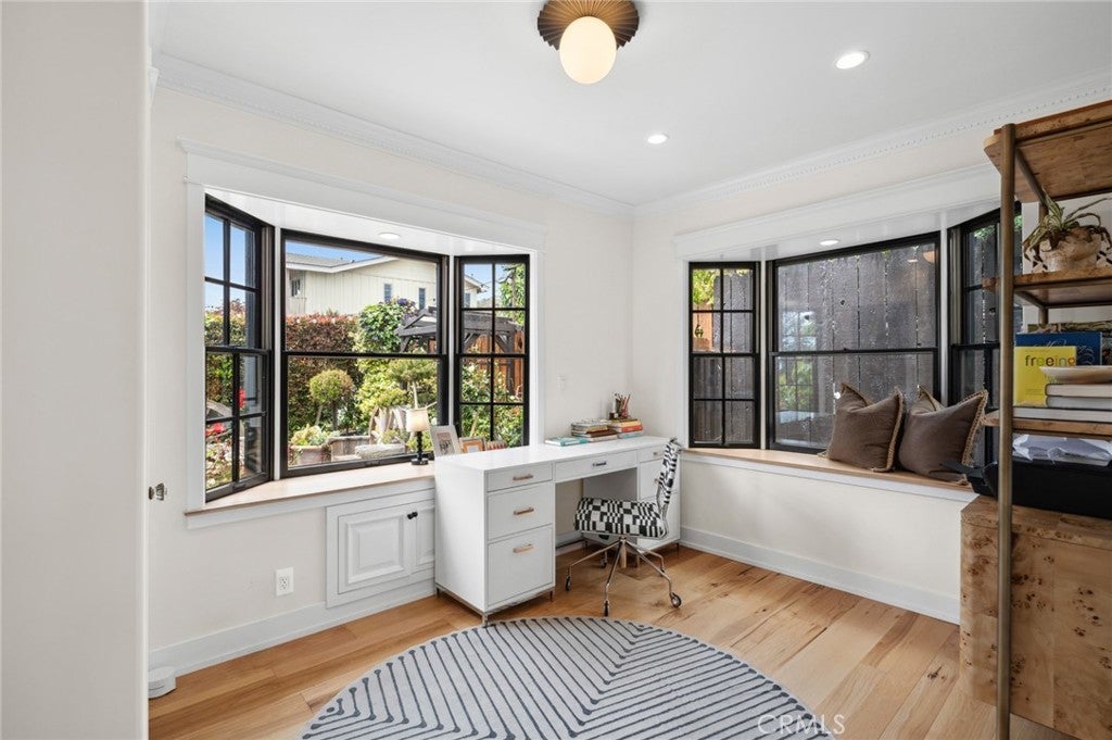 Moments from stunning beaches, romantic coves, acclaimed restaurants, and iconic art galleries, this turnkey home is enviably located in the highly sought-after Village neighborhood of Laguna Beach. This coastal cottage, fully renovated by the renowned Greg Abel, seamlessly blends historic character with modern comfort. Recognized under the Mills Act, this property offers substantial property tax savings due to its architectural significance. An inviting front yard with colorful landscaping sets the stage for spontaneous gatherings with friends and neighbors. Meticulously updated inside and out, the sun-kissed interior features custom hickory floors, brick accents, beamed ceilings, and an abundance of architectural charm. Notable improvements include a new roof, updated plumbing, and a new HVAC system. The open floor plan highlights timeless details such as original stained-glass windows, custom doors, and intricate brickwork. The light-filled living room is framed by large windows overlooking the lush gardens and centers around a welcoming fireplace—perfect for relaxing or entertaining. Enjoy seamless indoor/outdoor flow to a magical outdoor setting with mature landscaping—an entertainer’s dream, ideal for al fresco dining or soaking in the coastal climate. The thoughtfully designed chef’s kitchen showcases rich honed marble countertops, a charming bay window, exposed beamed ceilings, and top-tier Thermador and Viking appliances. The home features three bedrooms and two-and-a-half bathrooms. Two bedrooms on the main level, connected by a Jack & Jill bathroom, provide effortless single-level living. Upstairs, the spacious primary suite offers a private deck with ocean, hillside, and evening-light views, along with an ensuite bath featuring vintage-inspired tile work, a soaking tub, and marble countertops. Central air conditioning and refreshing sea breezes ensure year-round comfort. A one-car garage is complemented by a long driveway with generous parking or optional outdoor recreation space. Whether as a full-time residence or a weekend retreat, this exceptional property offers a rare opportunity to enjoy the best of Laguna Beach in a home rich with character, thoughtful design, and timeless appeal.