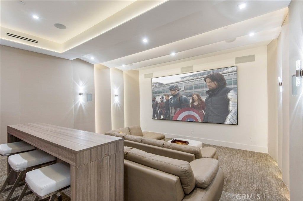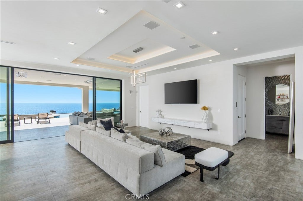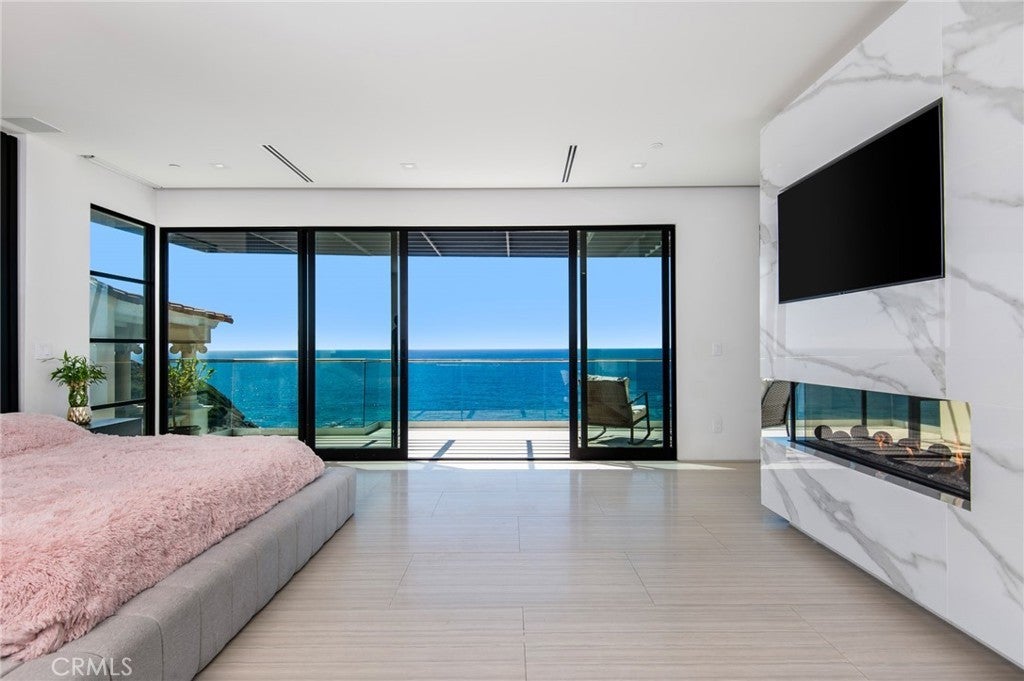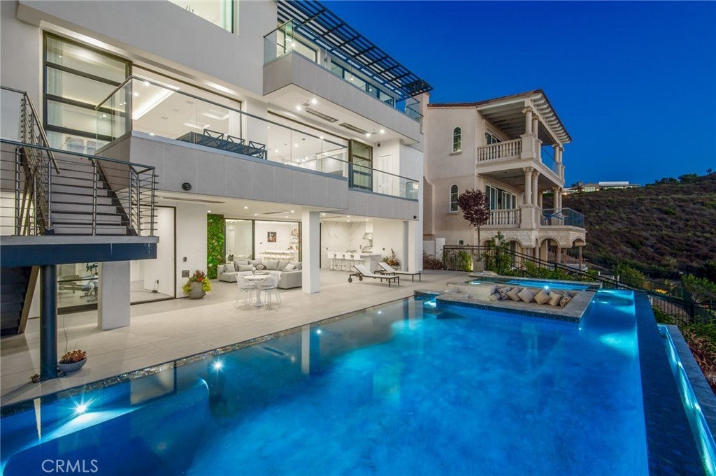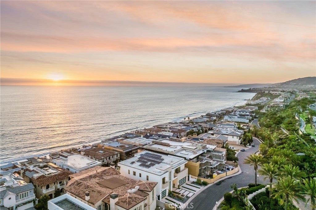 Recently constructed contemporary masterpiece in The Strand at Headlands - a coveted enclave located along the awe-inspiring Dana Point coastline. Sited behind the guard gates, the residence offers nearly 7,400 square feet of immaculately appointed, sleek interiors with an awe-inspiring exterior space, complete with one of the largest pools in the community. The straight-on views of the Pacific and Catalina Island begin at the entryway into this property, with its main level framed by two sets of full-height sliding glass doors spanning the length of the ocean-facing wall. Thoughtfully designed and executed, this floor offers the best in open entertaining space, with a glassed-in wine feature, living and dining areas, an office, and the home's impressive kitchen. Anchored by a bookmatched waterfall edge peninsula large enough to seat six, it boasts a cooktop and built-in coffee machine by Gaggengau, as well as a suite of Bosch appliances. Discreetly hidden, a large walk-in pantry maximizes the storage. Capitalizing on the views, the large balcony offers secondary dining and lounging areas. A modern floating staircase connects all three stories, with the upstairs dedicated to sleeping quarters. The soothing views of the Pacific extend to the primary retreat, complete with a balcony, a fireplace, and a sitting area. An expansive bathroom with a standalone ocean-facing tub, an oversized shower, and dual walk-in closets enhance the luxury of the owner's suite. Accessible by stairs and the home's elevator, the lowest level is the ultimate in California entertaining, with an impressive movie theater, a secondary living room, an Arabescato Corchia marble island, and beverage refrigerators. Blending seamlessly with the outdoors, this floor includes access to the impressive infinity edge pool with a spa, a conversation pit with a fire feature, and an outdoor kitchen. Offering privacy and convenience, the ensuite secondary bedrooms are found on both the upper and lowest levels. Property highlights include an elevator, interior and exterior security cameras, and a Control4 Smart Home system. Car enthusiasts will undoubtedly revel in the spacious four-car garage. The Strand is renowned for its residents-only amenities: a clubhouse with a pool, spa, and gym, as well as direct beach access.