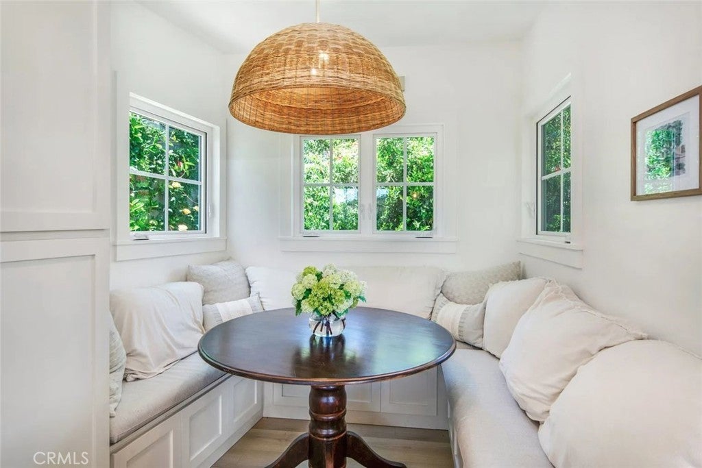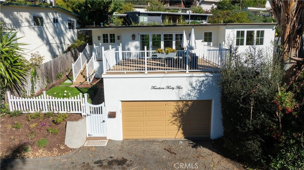 Welcome to your coastal cottage retreat at 1445 Bluebird Canyon Drive in beautiful Laguna Beach. Enter through the charming Dutch door into the main living area which boasts hardwood floors, a cozy fireplace, and opens to the large back yard. A wall of custom designed window doors open to the oversized front deck, perfect for outdoor dining, entertaining and relaxing. Enjoy ocean views from the deck, living room, kitchen and primary bedroom. The stylish chef's kitchen features custom-designed cabinets, a farmhouse sink, and a breakfast bar. The adjacent dining room features built-in custom bench seating with plenty of extra storage. The primary bedroom features a custom en-suite half bath. A second bedroom features direct access to the private backyard. The full bath features high end fixtures, a deep bathtub and custom tile throughout. Enjoy tranquility and privacy within the expansive wrap-around fenced yard, offering a paved patio area, grass, fruit trees, plus the essential outdoor shower. Other features include historic details, attached two car garage, spacious laundry room, and central air conditioning. Fully remodeled in 2024, this beautifully upgraded home is essentially brand new with updated windows, doors, hardwood floors, roof, plumbing, electrical, deck, foundation, irrigation and more. Ideally located on a tree-lined street within peaceful Bluebird Canyon, just a 5 minute golf cart ride to the sand, this quintessential upgraded beach cottage is super close to renowned hiking and biking trails, village restaurants, shopping, and some of the most beautiful beaches in the world. Don’t miss this opportunity to own a piece of paradise!