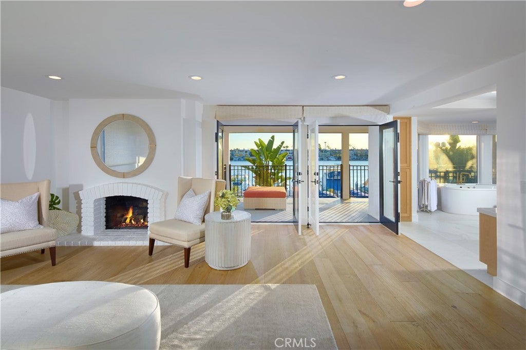 Set within the prestigious, 24-hour guard-gated Bayshores community, this classic traditional bayfront residence embodies the timeless elegance of an East Coast–inspired waterfront home. Known for its mature, tree-lined streets, iconic coastal architecture, two private bay beaches, clubhouse, private marina, and exclusive access to the Balboa Bay Club, Bayshores remains one of Newport Beach’s most coveted bayfront enclaves. Positioned along one of the longest and most desirable stretches of bayfront in the community, the home enjoys sweeping, ever-changing views of the Newport Channel. From vibrant sunrises to glowing sunsets, the outlook is animated daily by sailboat regattas, morning crew workouts, and the gentle cadence of harbor life. The interior is defined by white oak hardwood floors throughout and a dramatic two-story foyer highlighted by a circular staircase with white oak handrail. Formal and casual living spaces flow seamlessly, including a formal dining room with vaulted, grooved ceilings and a spacious living room centered around a white brick fireplace with French doors opening directly to the bay. The updated kitchen features marble countertops, stainless steel appliances, a breakfast nook, and opens to an adjacent family room with fireplace—ideal for everyday living and entertaining. Outdoors, a generous bayside patio with brick hardscape and lawn creates an inviting setting for entertaining or simply enjoying life at the water’s edge. The main level also includes a bedroom with adjacent bath appointed with brass fixtures. Upstairs, additional bedrooms are complemented by a playroom with laundry and a private primary suite offering a fireplace, walk-in closet with built-ins, private balcony, and an elegant bath with white oak cabinetry, dual vanities, freestanding jetted tub, separate shower, and water closet. Enjoy Duffy cruises to nearby harbor destinations, waterfront dining, and nightlife, all while remaining just minutes from the shops and fine dining of 17th Street, Lido Village, and Fashion Island—offering a rare combination of privacy, tradition, and quintessential Newport Beach coastal living.
