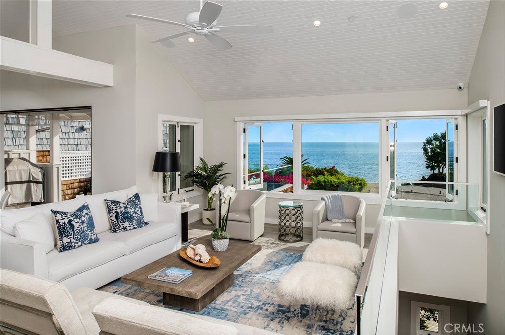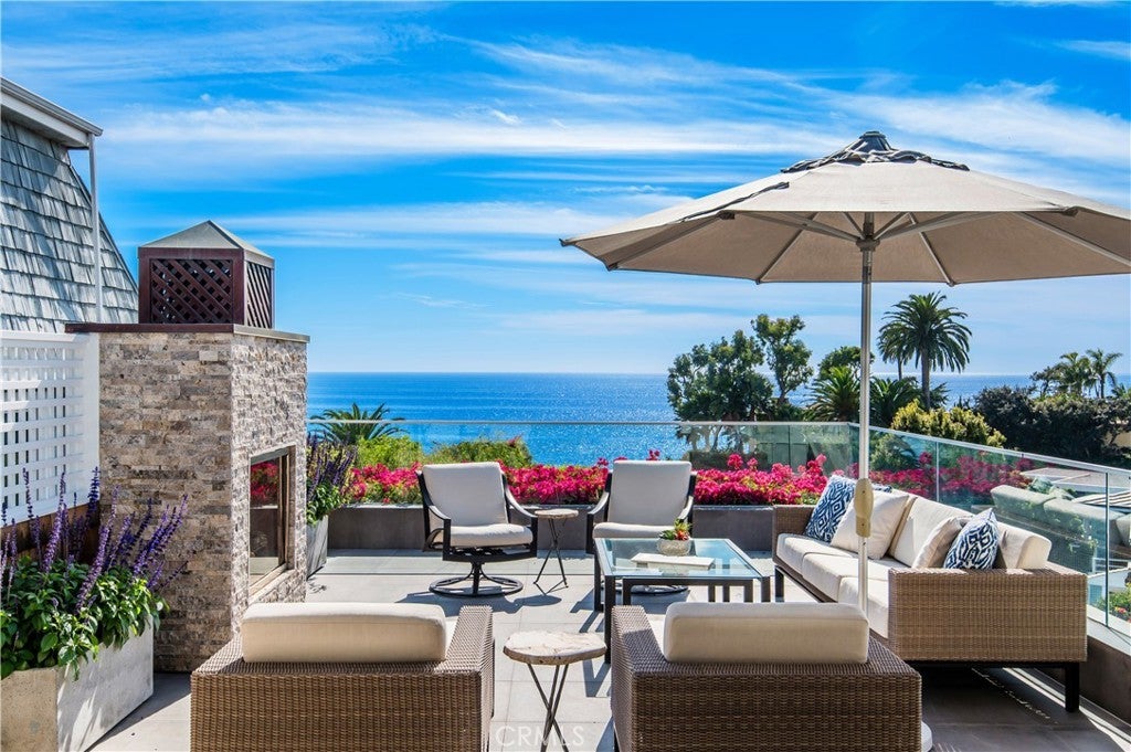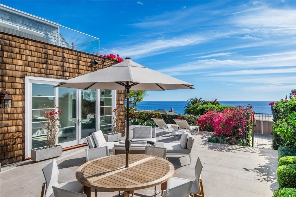 Breathtaking panoramas of the Pacific Ocean, meticulously revived interiors, and elevated outdoor living combine to create a quintessential Anders Lasater Architects-designed coastal retreat. Nestled within the coveted Fisherman’s Cove, Cliff Drive offers a meticulously refreshed contemporary aesthetic coupled with the privacy of a perched lot. Blending elegance and comfort, the main level features an open great room concept with access to a large deck with a fireplace. The ocean-facing living and dining areas flow seamlessly into the home’s gourmet kitchen, allowing for effortless everyday enjoyment or entertaining on special occasions. Below, a more casual secondary living room shares the floor with two of the home’s ensuite bedrooms. The primary suite is a luxurious haven with a marble-clad bathroom complete with a standalone tub, walk-in shower, and an oversized closet. Airy and bright, the owner's bedroom offers access to a large patio with an in-ground jacuzzi, multiple sitting areas, and a fire pit. The remaining secondary sleeping quarters include an upper-level retreat with its own living area complete with a wet bar, a fireplace, and an ocean-facing balcony. Amenities of this home include a two-car garage and a gated motor court. Iconic views, immaculate interiors, and a fantastic location near all Laguna Beach is known for create the ultimate coastal haven.