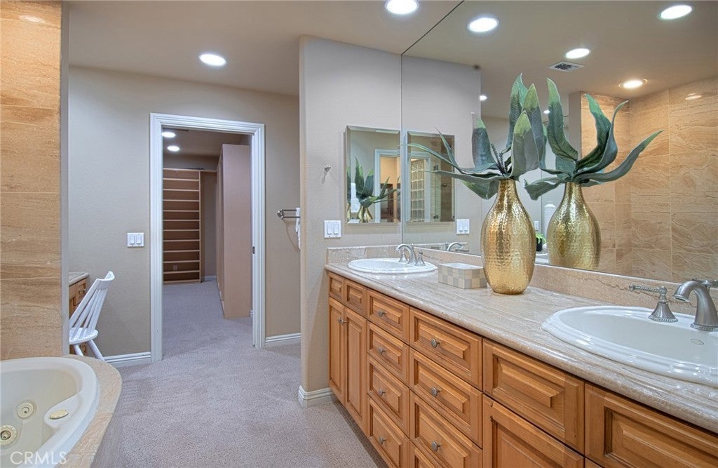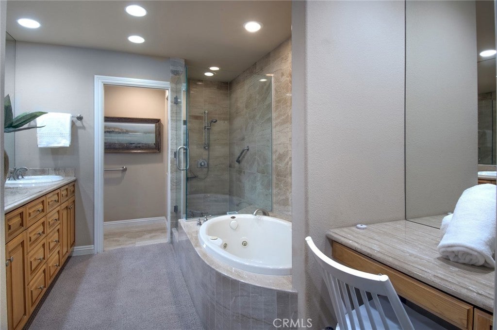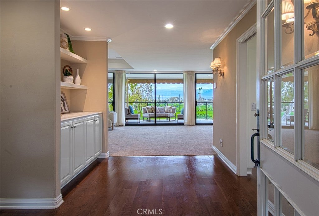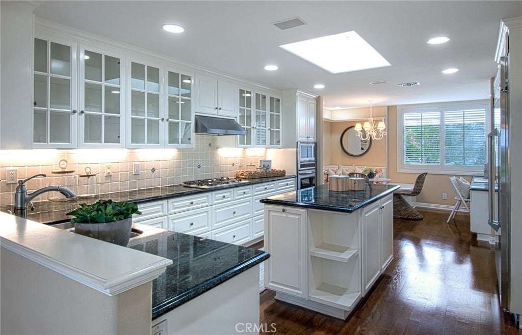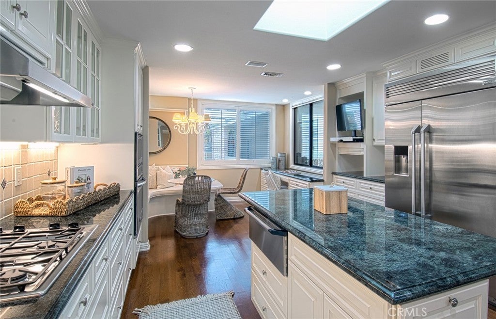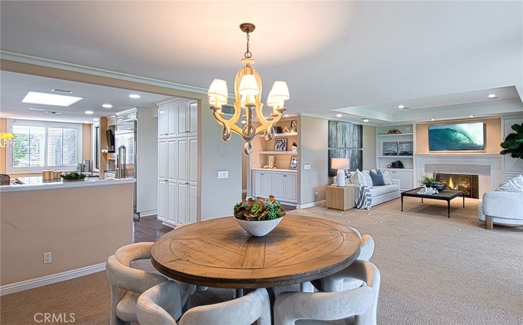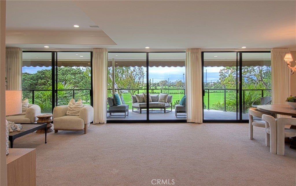 Completely and thoughtfully redesigned, this exceptional upper-level residence presents a floor plan rarely found within the private, guard-gated community of Granville. The home offers an ideal balance of elegance and functionality, enhanced by sweeping views of Catalina Island and the 9th fairway of Newport Beach Country Club. Expanded to embrace an open-concept layout, the residence features a spacious, light-filled kitchen appointed with stainless steel appliances, a large center island, and abundant custom cabinetry. An inviting breakfast area with built-in seating further complements the space, making it as practical as it is welcoming. The great room is framed by a dramatic wall of glass, capturing serene vistas of the golf course and ocean beyond. Adjacent to this space is a well-proportioned outdoor entertaining area, ideal for both everyday relaxation and intimate gatherings. Throughout the home, thoughtful design is evident. The gracious primary suite includes a dedicated office with custom built-in cabinetry, a generous walk-in closet, and a spa-inspired bathroom featuring a separate jetted soaking tub and walk-in shower. A sizable secondary bedroom with a coffered ceiling and tastefully finished en-suite bath, along with a separate laundry room, complete the interior. A true hidden gem, Granville is ideally located just moments below the world-class shopping and dining of Fashion Island. The community offers beautifully maintained grounds and resort-style amenities, including a pool and spa, outdoor cooking and dining areas, and a clubhouse available for larger gatherings.
