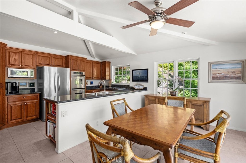 Experience refined coastal living in this ocean-view residence, ideally located in one of Laguna Beach’s most desirable neighborhoods. Just a short stroll from acclaimed restaurants, art galleries, world-renowned beaches, and the vibrant heart of Laguna Village, this timeless home offers the ultimate blend of charm, lifestyle, and convenience. The property beautifully combines classic architectural character with modern comforts. Offering four bedrooms and three-and-a-half bathrooms, the flexible floor plan includes a separate entrance to the lower-level rooms, ideal for guests, extended family, or a creative studio space. A main-level bedroom allows for single-level living and connects to an additional room that can serve as a den, media room, or family room, with access to a spacious finished storage area. At the heart of the home, a sunlit family kitchen with ample storage opens to a generous ocean-view deck—perfect for al fresco dining, garden views, and breathtaking sunsets over Catalina Island. A flat grassy yard and mature landscaping create a peaceful, private outdoor retreat. The primary suite is a tranquil sanctuary, featuring sweeping ocean views, natural light throughout, vaulted ceilings, and an oversized skylight that fills the space with sunshine by day and starlight by night. The en-suite bath offers garden views, a soaking tub, and a separate shower for a spa-like experience. The home’s prime location makes it easy to leave the car behind and explore magnificent beaches, scenic parks, and the celebrated restaurants, cafe´s, galleries, and boutiques that make Laguna Beach such a coveted destination. This property promises an unparalleled coastal living experience.
