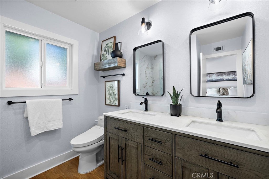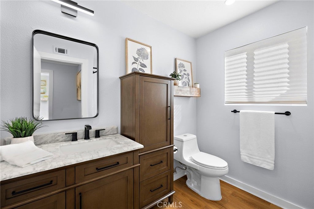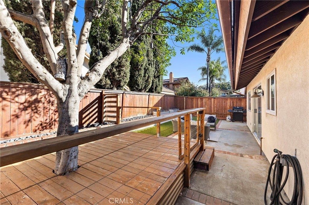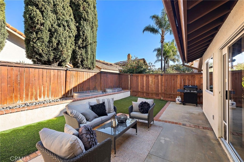 UPGRADES GALORE! Tucked inside Vista Ladera in Rancho Santa Margarita, 7 Via Olorosa is the kind of home that buyers wait for: a rare, single-level, single-family detached residence with no interior steps, a private fenced backyard, and the huge bonus of a full driveway (plus direct access to the two-car garage). Completely reimagined and renovated to designer-magazine perfection, this home lives far beyond its footprint with a bright, open-concept layout, soaring vaulted ceilings, and oversized windows that pour in natural light. The kitchen is crisp and contemporary—think modern white cabinetry, quartz countertops, Shaker-style finishes, subway tile backsplash, and stainless appliances—all flowing seamlessly into the living and dining spaces for effortless everyday living and elevated entertaining. The floorplan is brilliantly private, with two bedrooms placed on opposite sides of the home. The primary suite easily fits a king-sized bed and features an en-suite bath plus sliding doors that open directly to the backyard—your own quiet retreat for morning coffee or evening unwinding. Out back, enjoy a charming mix of hardscape, grassy area, and raised planters—a true outdoor extension of the home, perfect for dining al fresco, gardening, or letting pets play. And the lifestyle? Classic RSM. You’re close to parks, tennis courts, trails, and the Lago Santa Margarita Beach Club, with endless ways to enjoy the community’s outdoor energy. If you’re looking for turnkey, single-level luxury with the comfort of a detached home, backyard living, and real parking—7 Via Olorosa delivers.