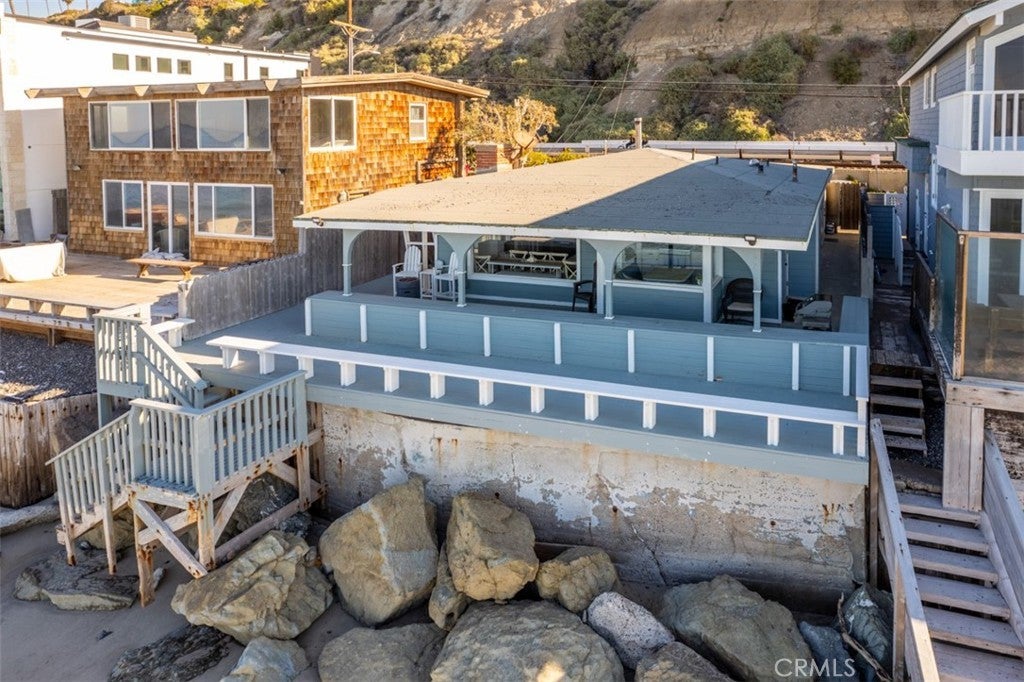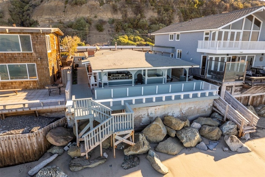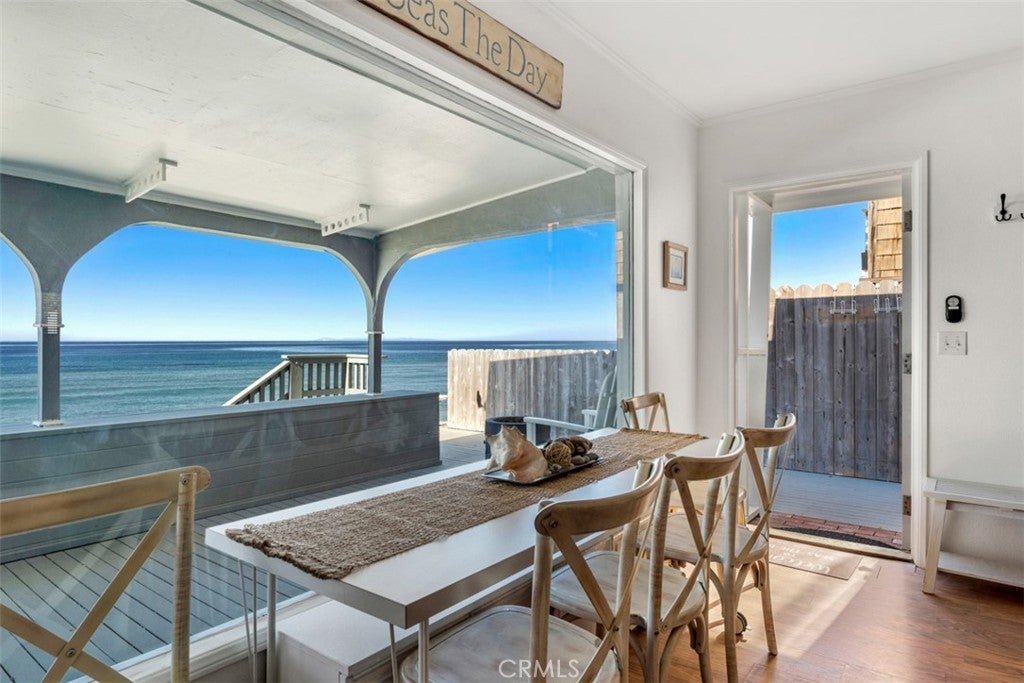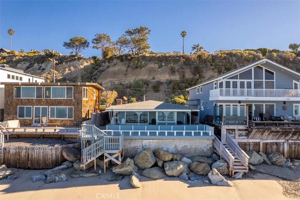 Available as of May 25th, 2026. Furnished Vacation Rental. Rates are nightly & seasonal. Minimum 5 nights. Seas the Day Beach House is a clean & updated 1,012 sq. ft. BEACHFRONT detached Single Family Home that sits on a 2,400 sq. ft. private lot. in the exclusive 24 hour guard gated community of Beach Road. At low tide, you will enjoy beach access right in your backyard. At high tide, you will sit and enjoy the feeling of being on a boat. Enjoy incredible sunsets, coastline, Catalina Island, & San Clemente Island views with beach access from the spacious covered wrap-around deck. A peaceful place to listen to the ocean waves and enjoy the ocean breezes while spotting dolphins, whales, and other sea life. The cottage offers 2 bedrooms, 1 bedroom with a queen bed, & 1 bedrooms with a full bed & 3 twin beds & office space, 1 full bath, an outdoor shower, a living room with a decorative fireplace, a dining area, laundry, & a full kitchen with a diner-style built-in nook that enjoys panoramic ocean and city views day and night. There is free private parking in front of the property. This magical cottage also has an attached garage filled with beach toys for enjoying the ocean and the nearby cities. The bike trails will take you from the property to Dana Point, San Clemente, and San Juan Capistrano. Stay a short distance to visit Laguna Beach, Newport Beach, and other nearby cities each with its own unique charm. If you are looking for adventure, you will be in close proximity to parks, fine dining, trails, events, fishing, golf, and endless opportunities for entertainment are all nearby. There is a train that runs behind the neighborhood that has a train station 1 mile away making traveling by train to Oceanside, Los Angeles, or beyond very accessible. The Free Dana Point Trolly picks up at the end of the community & connects with Free Trolleys from other nearby beach cities. Come & relax or venture out just minutes to the beaches, restaurants, parks & biking trails. Just bring your clothes & unwind because starter kits for all your needs will be included. Maximum occupancy of 6 people, 1 small dog will be considered. Cleaning fee $250 per stay & pet fee $500 per stay. Short Term Rental Permit number STR23-0021. Minimum 5 nights. Rates are nightly & seasonal for shorter stays. Monthly rate June-Aug $20,000 a month. Sept-May $15,000 a month.