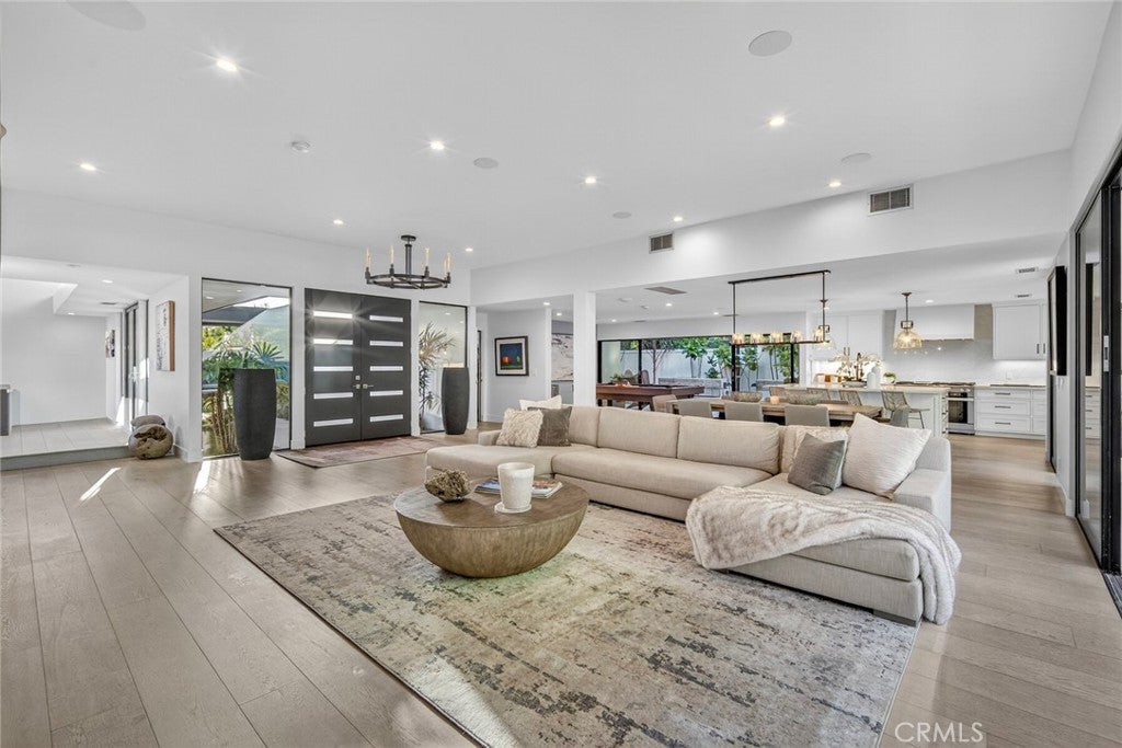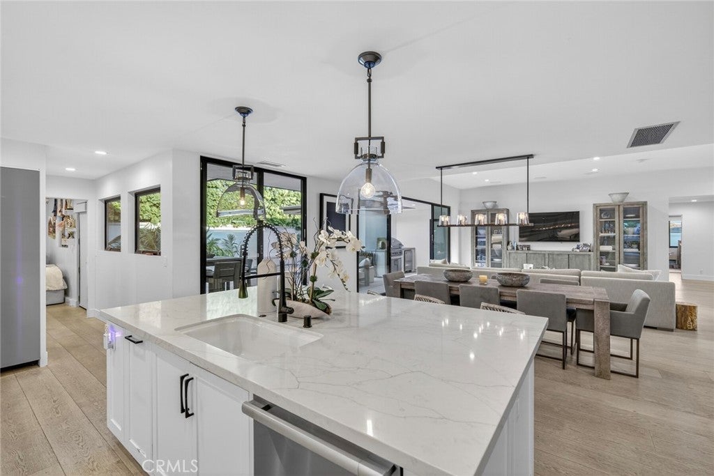 Prominently positioned in guard-gated Monarch Bay, this single-level coastal residence captures striking ocean, whitewater, sand, Headlands, and Ritz-Carlton views from its main living space. Nearly completely redesigned within the last five years, the home spans approximately 3,500 square feet and blends clean architectural lines with a warm, soft-contemporary aesthetic designed for elevated yet comfortable living. A beautiful entry atrium leads into an open great room filled with natural light and thoughtfully connected to the outdoors at multiple points. Smooth-coat walls, clean detailing, and carefully selected materials reinforce the home’s refined, contemporary feel throughout. The kitchen is outfitted with Miele appliances and integrates seamlessly with the living and dining areas, making it equally well suited for everyday living and larger-scale entertaining. The true centerpiece of the home is the dramatic living room, featuring soaring 12-foot ceilings, expansive Fleetwood windows and doors, oversized sliders oriented to the ocean views, an 8-foot glass fireplace, and a built-in wet bar. The open layout was intentionally designed to maximize light, flow, and indoor-outdoor living through versatile, interconnected spaces. The property has been thoughtfully upgraded with integrated wiring for cameras and speakers throughout, supporting modern living without compromising the home’s clean aesthetic. Outdoors, newly completed pool, spa, hardscape, softscape, water features, and a putting green create a private, resort-style setting. New roof installed in 2025. A beautifully landscaped entry courtyard, mature olive tree, and curated outdoor lighting further elevate the arrival experience. Monarch Bay residents enjoy exclusive access to the Monarch Bay Private Beach Club, operated by the Waldorf Astoria Monarch Beach, offering beach chair service, dining, bar, and events, along with newly added tennis, pickleball, and playground amenities. With a prime location among five-star resorts, year-round golf, and world-class beaches, exceptional coastal views from its primary living space, and refined single-level design, this is premier Monarch Bay living within one of Southern California’s most sought-after guard-gated communities, and only one hour from both Los Angeles and San Diego.